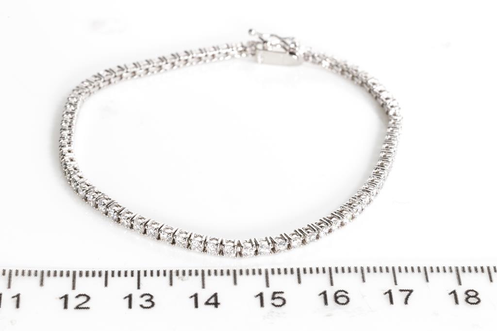 Diamond tennis bracelet with 69 round Diamonds totalling 3.00cts (Estimated grading: H-I SI). Platinum. Length: 19cm. Weight: 10g. (Pre-owned)