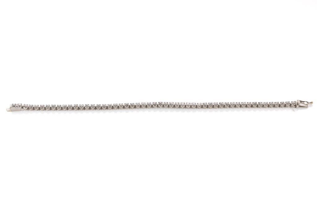Diamond tennis bracelet with 51 round Diamonds totalling 3.00cts (Estimated grading: H P3). 18ct white gold. Length: 18cm. Weight: 7.9g (Pre-owned)