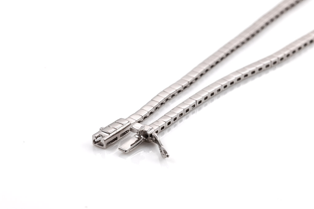 Diamond tennis necklace with 73 round Diamonds totalling 3.00cts (Estimated grading: H-I P1). 14ct white gold. Length: 41cm. Weight: 17.3g. With Certificate #416528. (New)