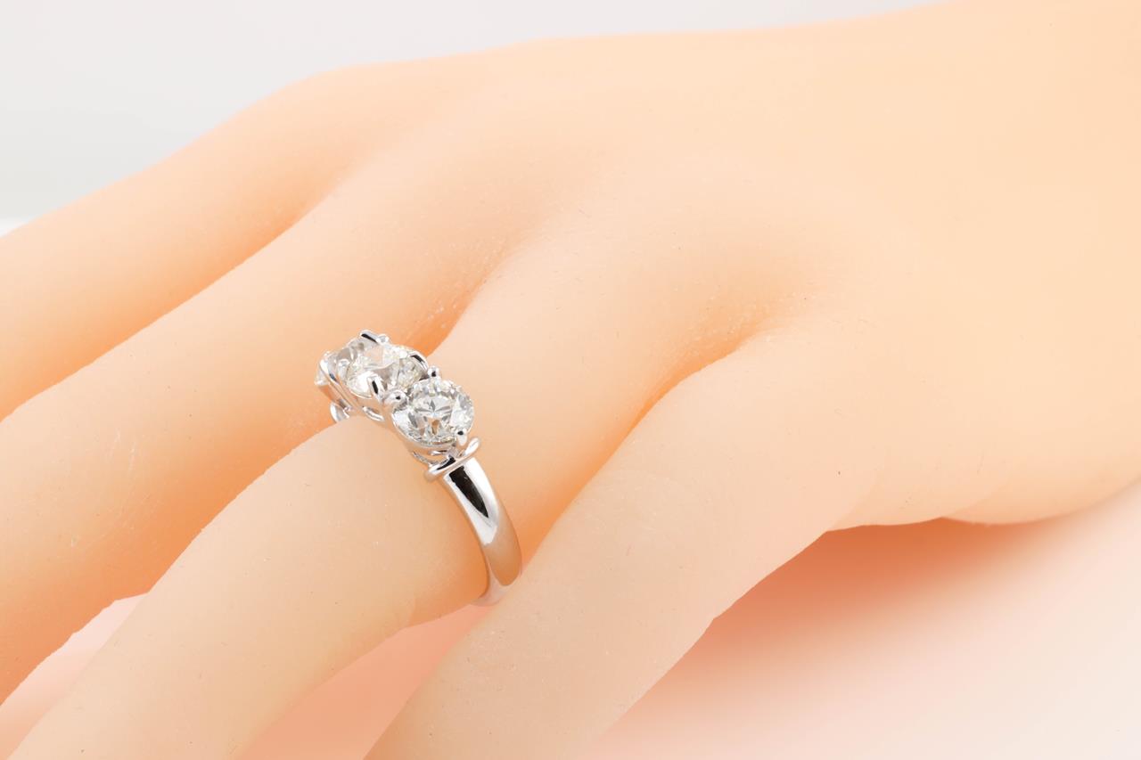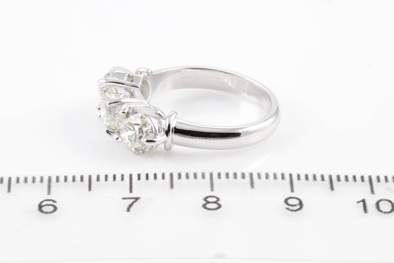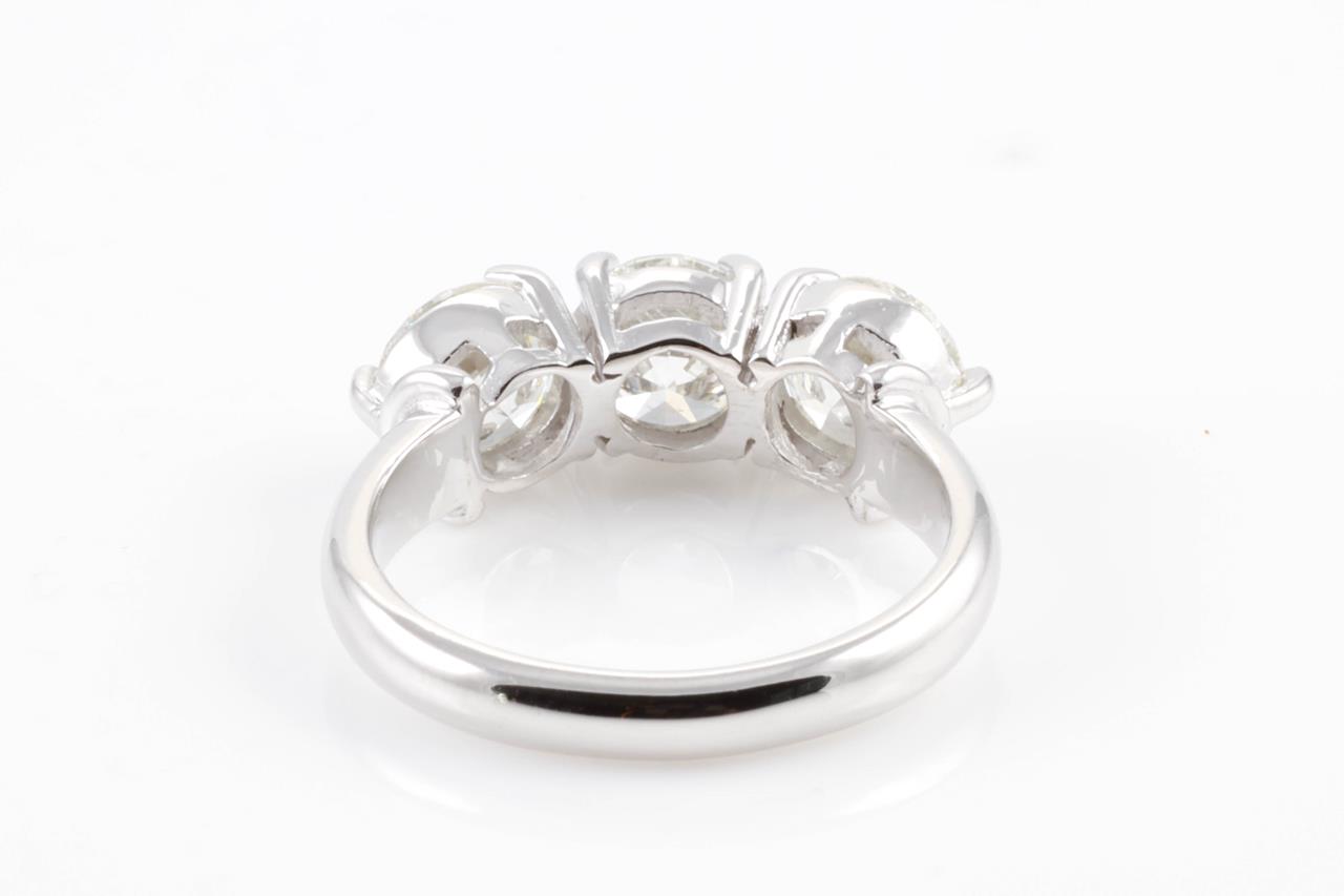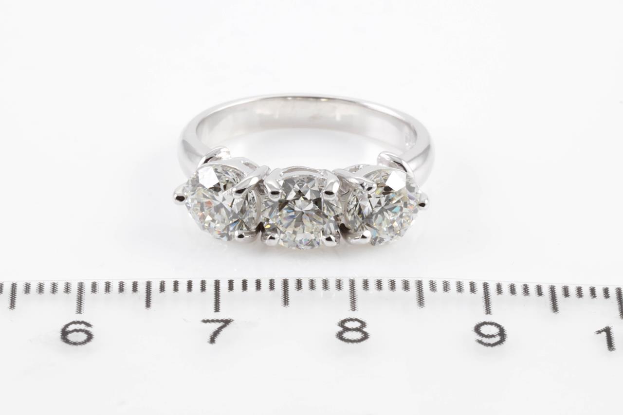 Diamond Trilogy ring with 3 round brilliant cut Diamonds totalling 3.00cts (with GIA reports graded as J SI1 #2215404149; J VS2 # 2211386919, 2201573787). 18ct white gold. Ring size: L. Weight: 5.6g. (New)