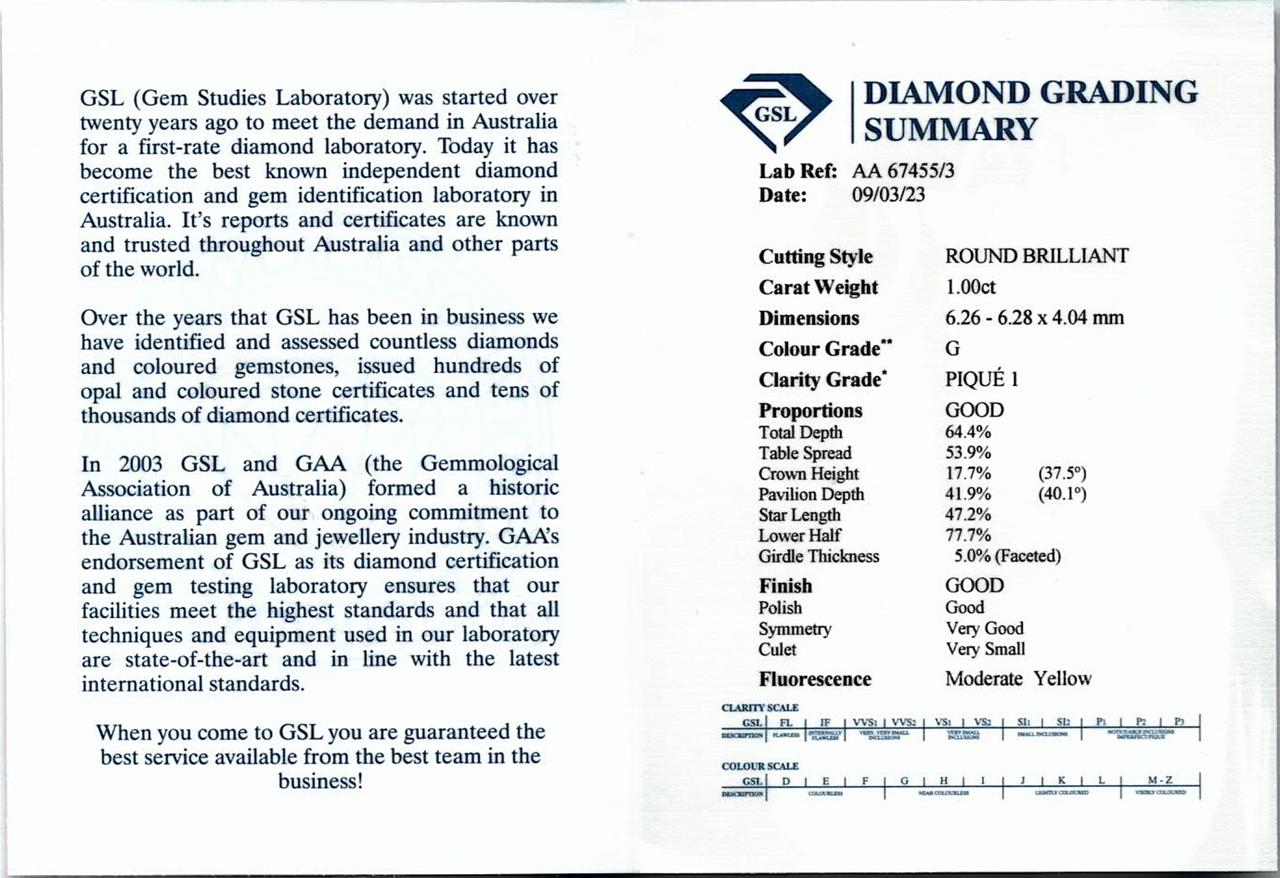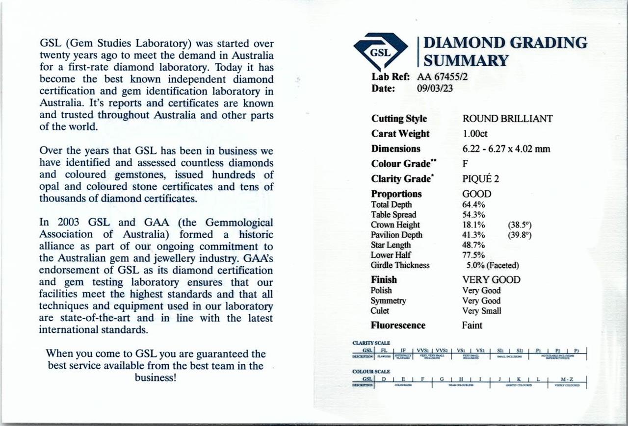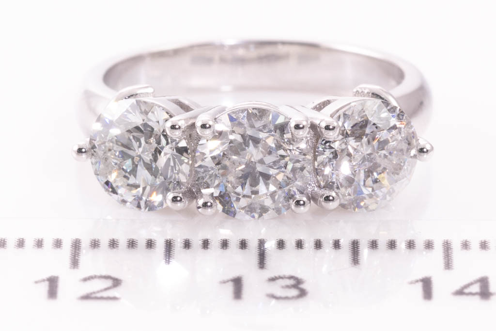 Diamond Trilogy ring with 3 round brilliant cut diamonds totalling 3.00cts (with GSL Summary graded as G P1 #AA67455/1, AA67455/3; F P2 #AA67455/2). 18ct white gold. Ring size L. Weight: 6.7g. (New)