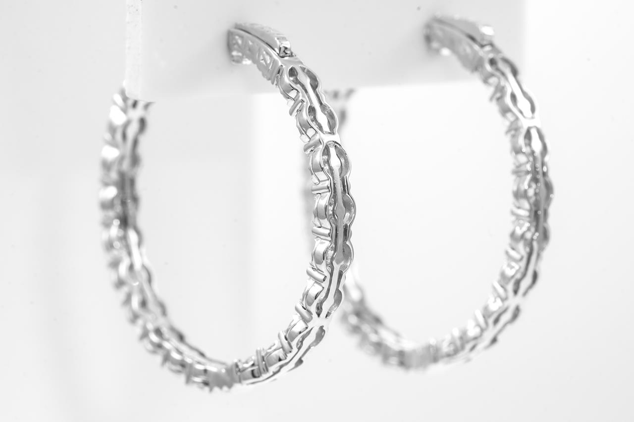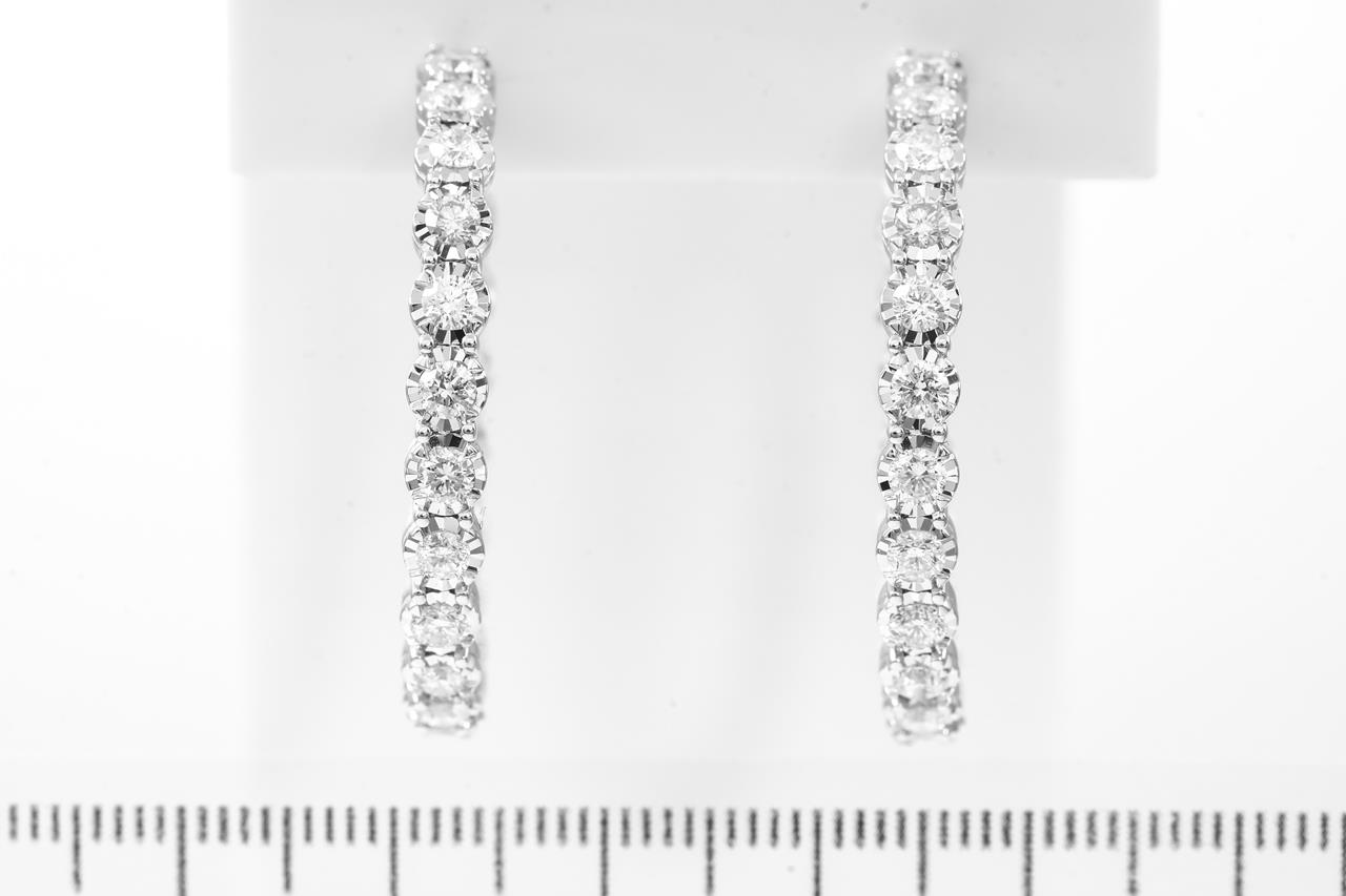 Diamond hoop earrings with round Diamonds totalling 3.01cts (Estimated grading: G-H SI2). 14ct white gold. Weight: 9.4g. With certificate #414908. (New)