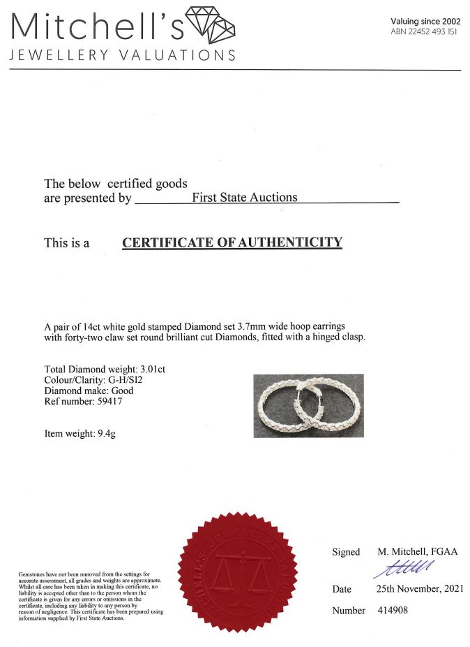 3.01ct Diamond Hoop Earrings | First State Auctions
