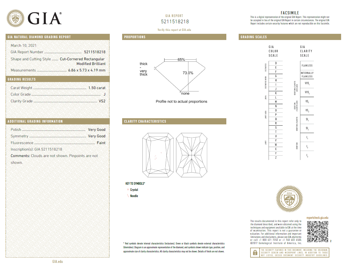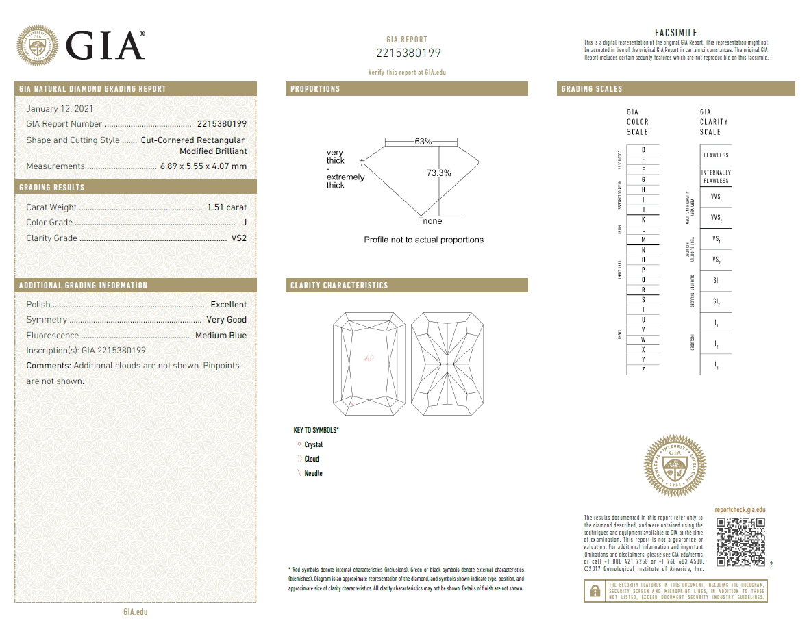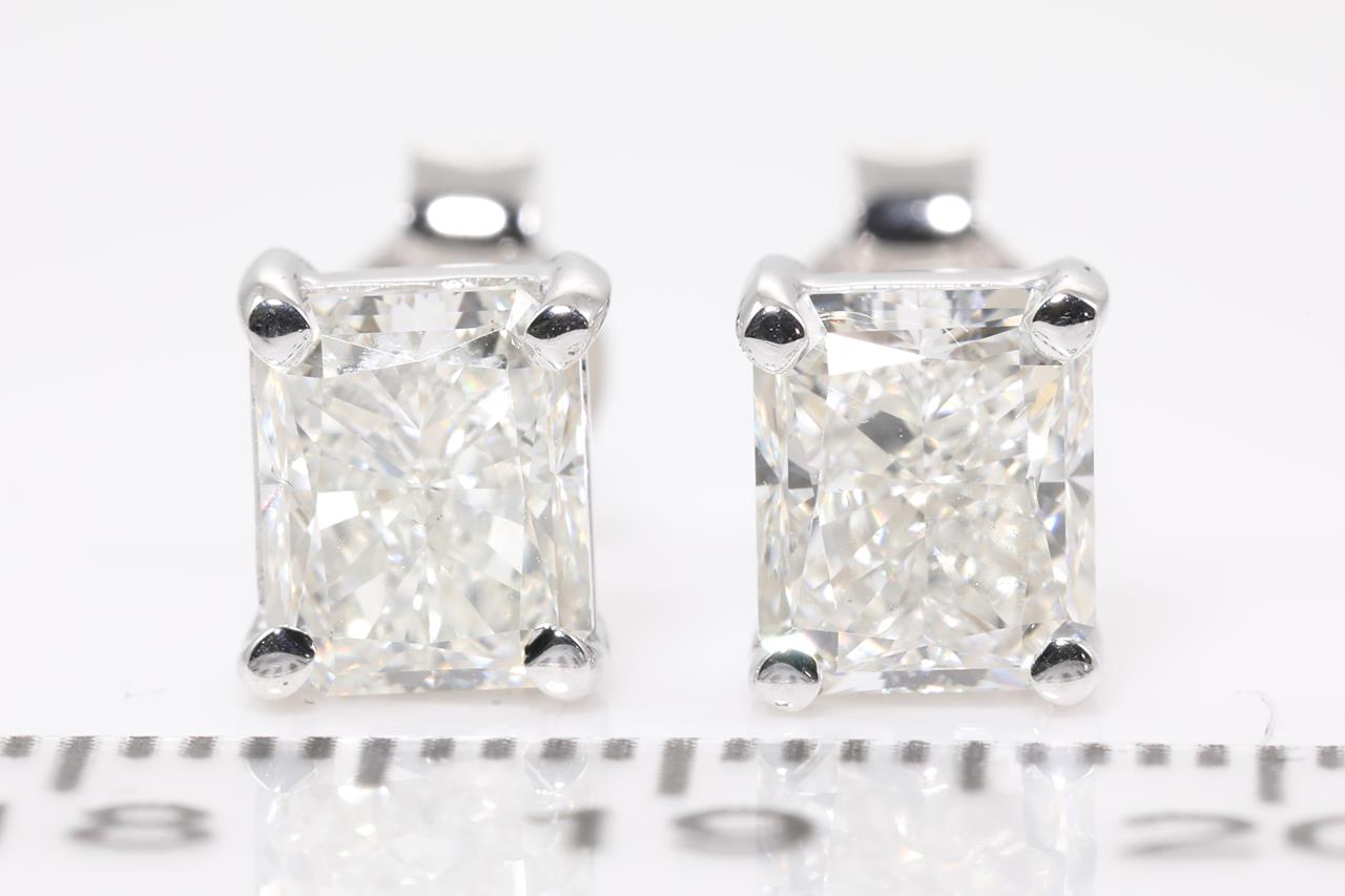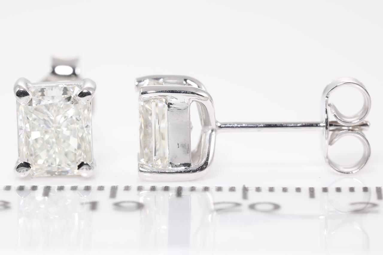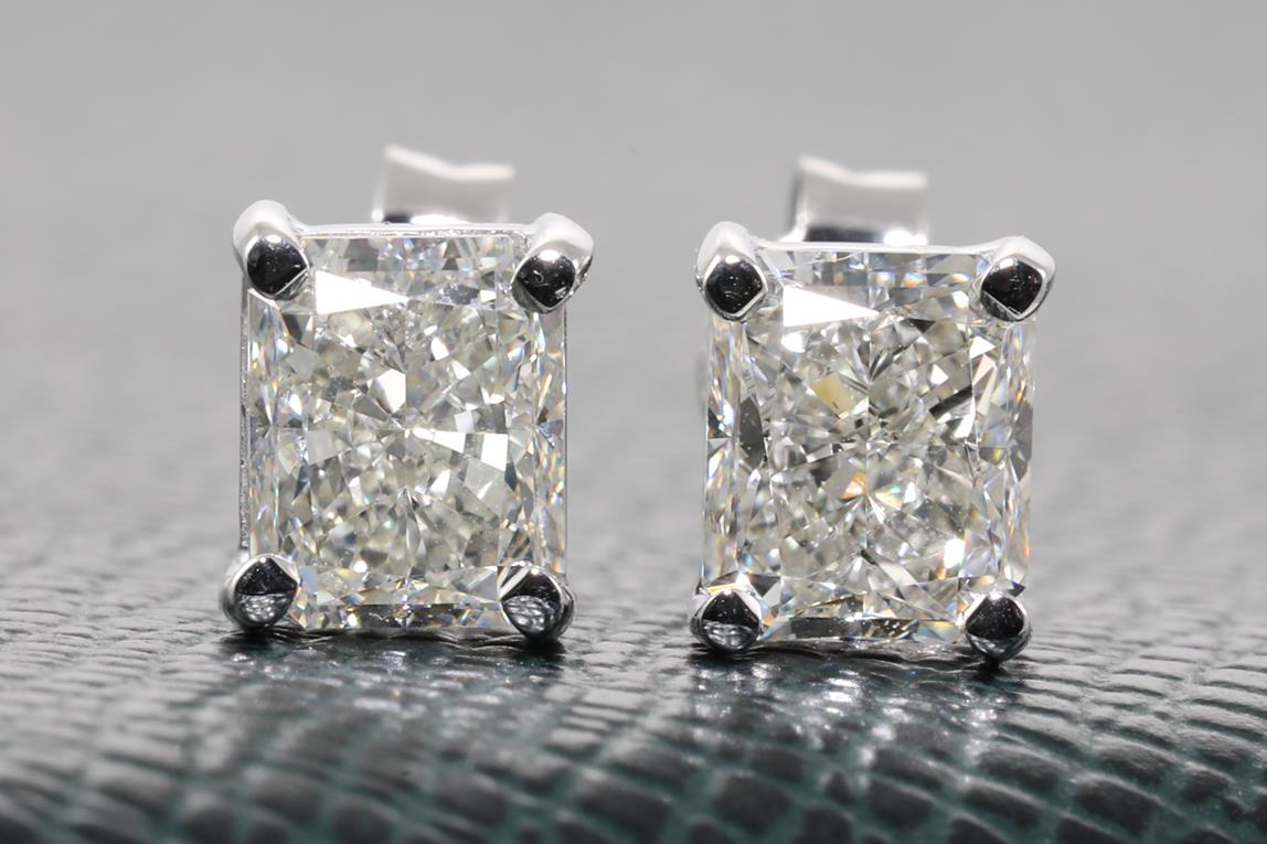 Diamond stud earrings with 2 radiant cut Diamonds totalling 3.01cts (with GIA reports graded as J VS2 #5211518218, 2215380199). 18ct white gold. Weight: 3.3g (New).