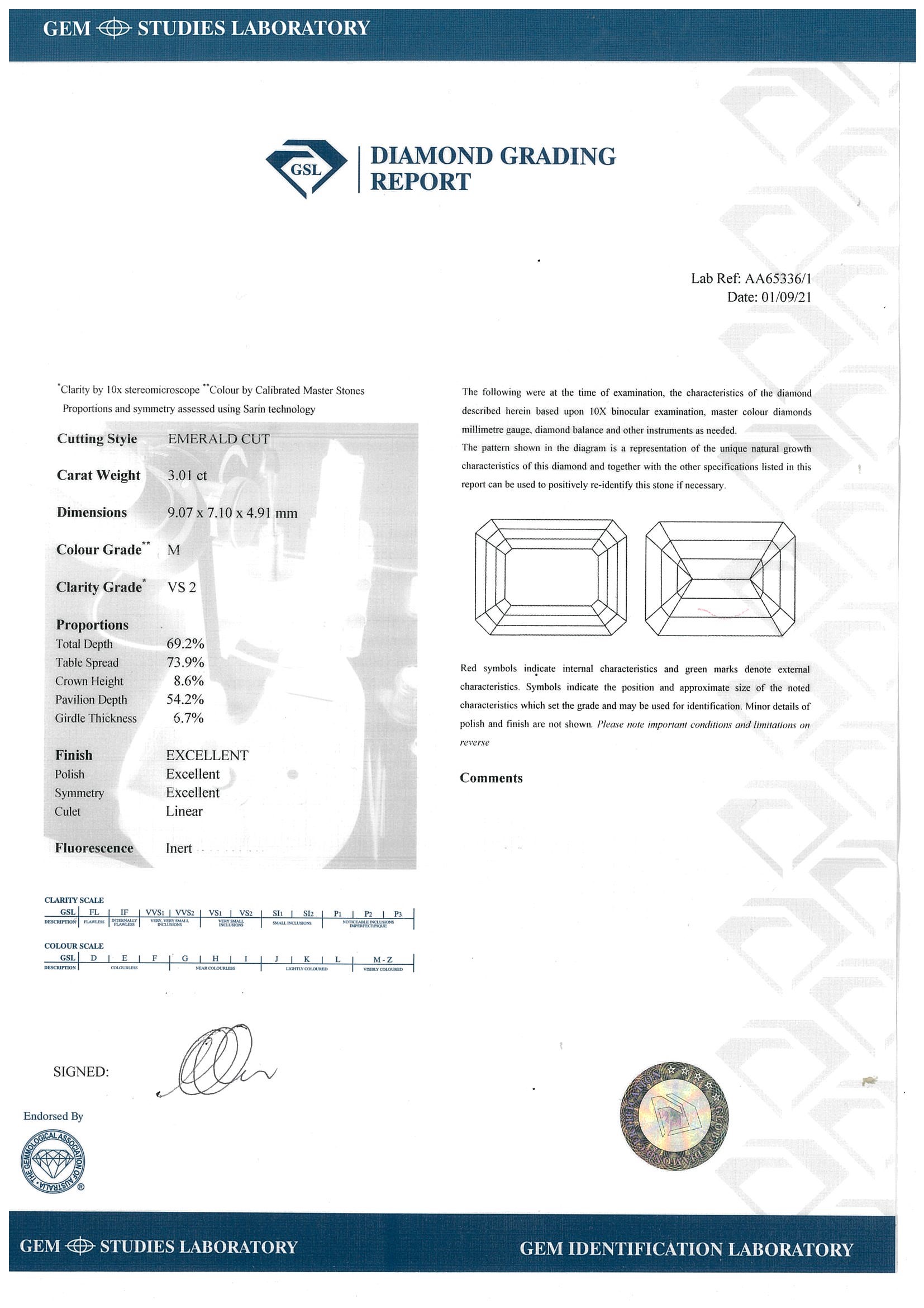 3.01ct Emerald Cut Diamond GSL M VS2 | First State Auctions