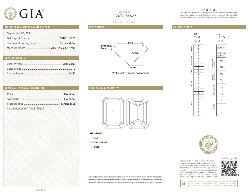 A loose Emerald cut Diamond of 3.01ct (With GIA report graded as D VVS2 #7403155629). (New)