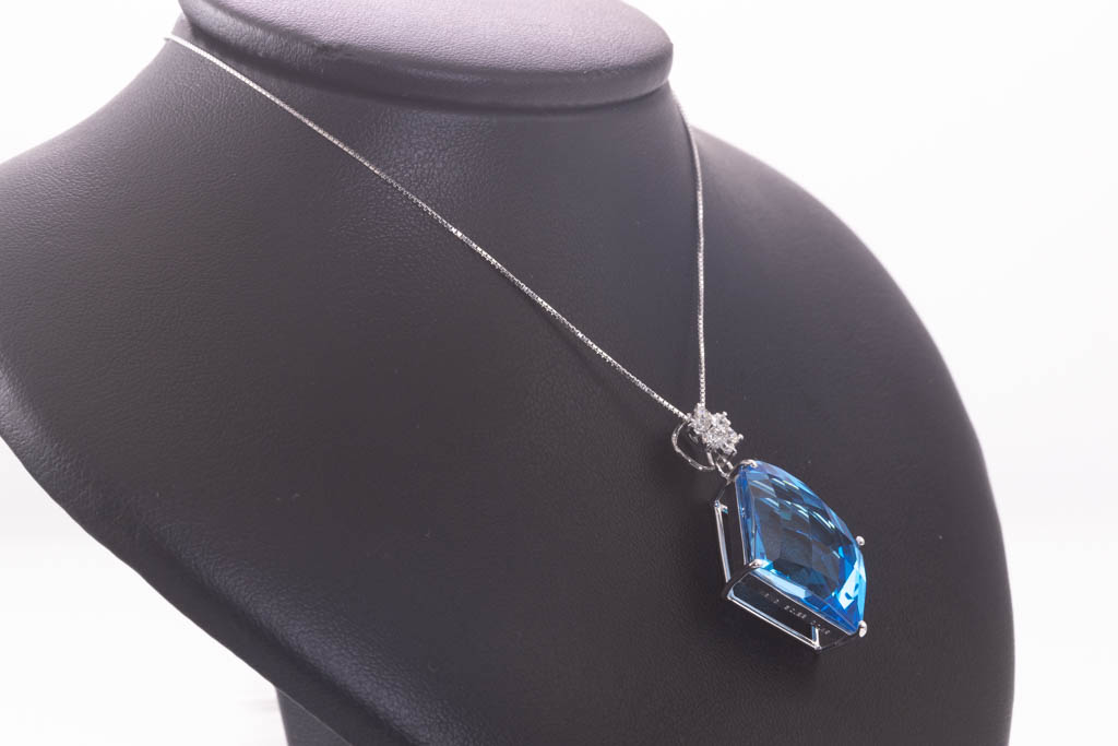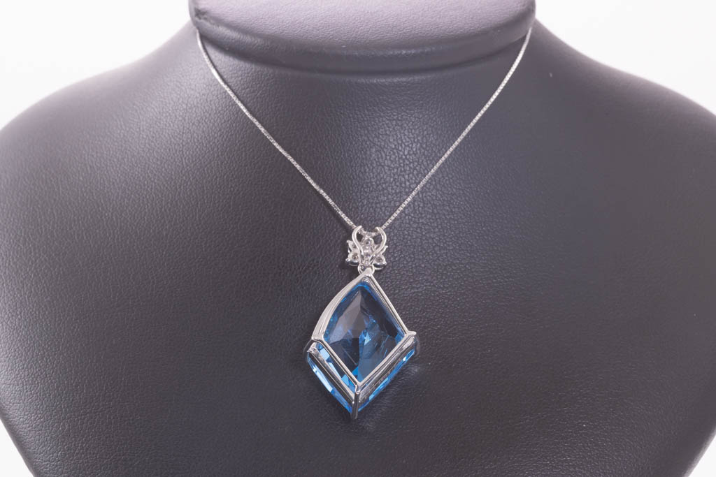 30.22ct Blue Topaz and Diamond Pendant | First State Auctions