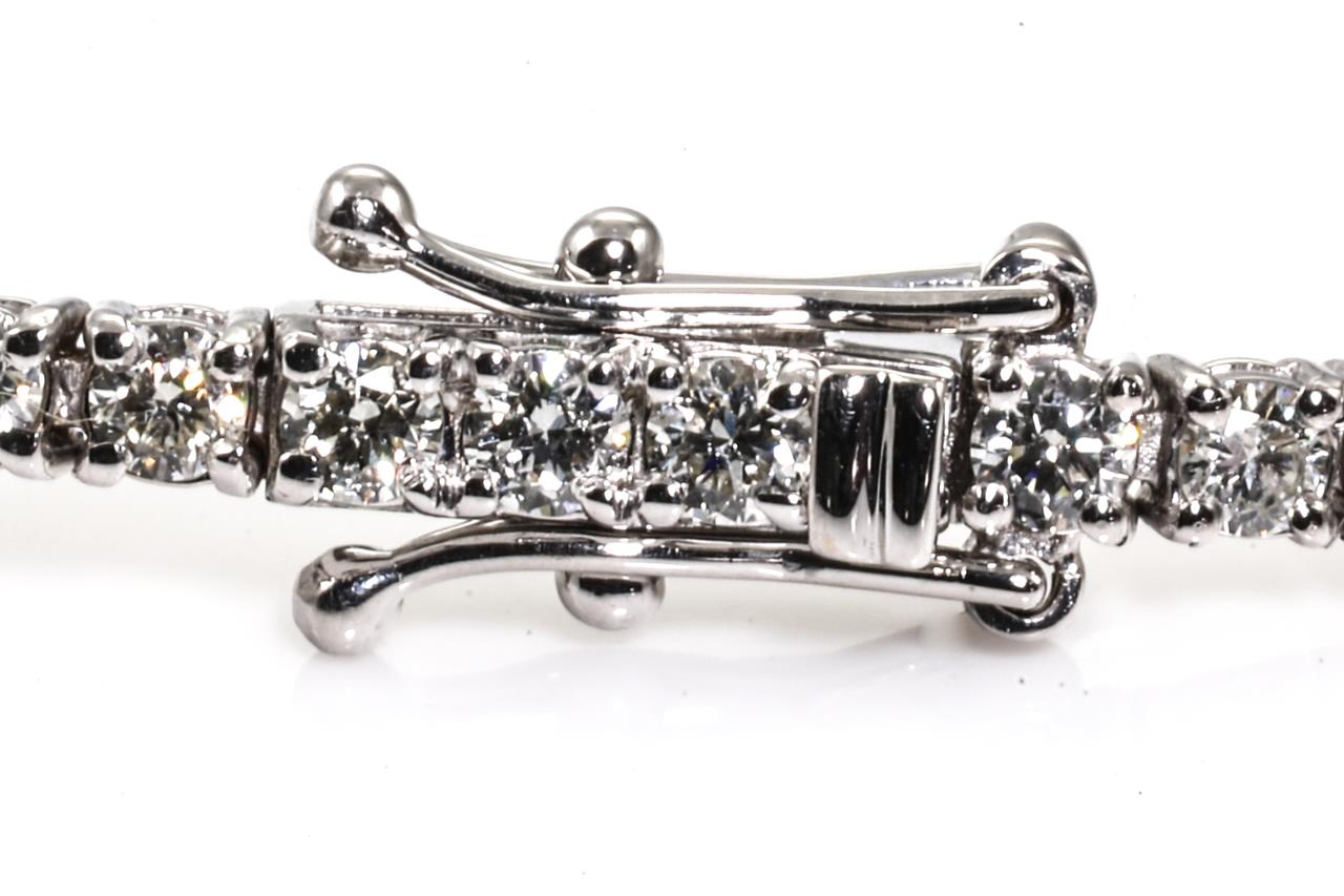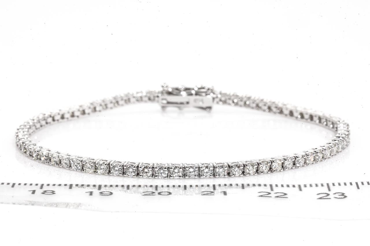Diamond tennis bracelet with 69 round Diamonds totalling 3.02cts (Estimated grading: J-K SI). 18ct white gold. Length: 18.5cm. Weight: 8.2g. With certificate #415497. (New)