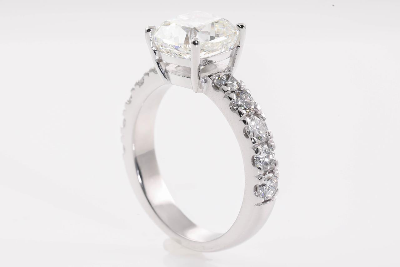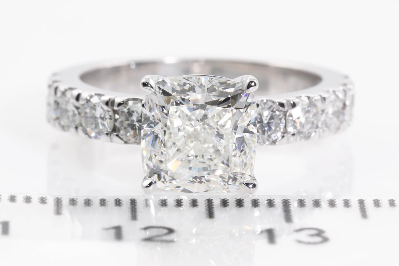 3.03ct Centre Cushion Cut Diamond Ring J SI2