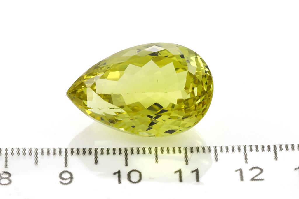 A loose pear shape Lemon Quartz of 30.42ct. Dimensions: 25mm x 16mm x 12.9mm. (As New)