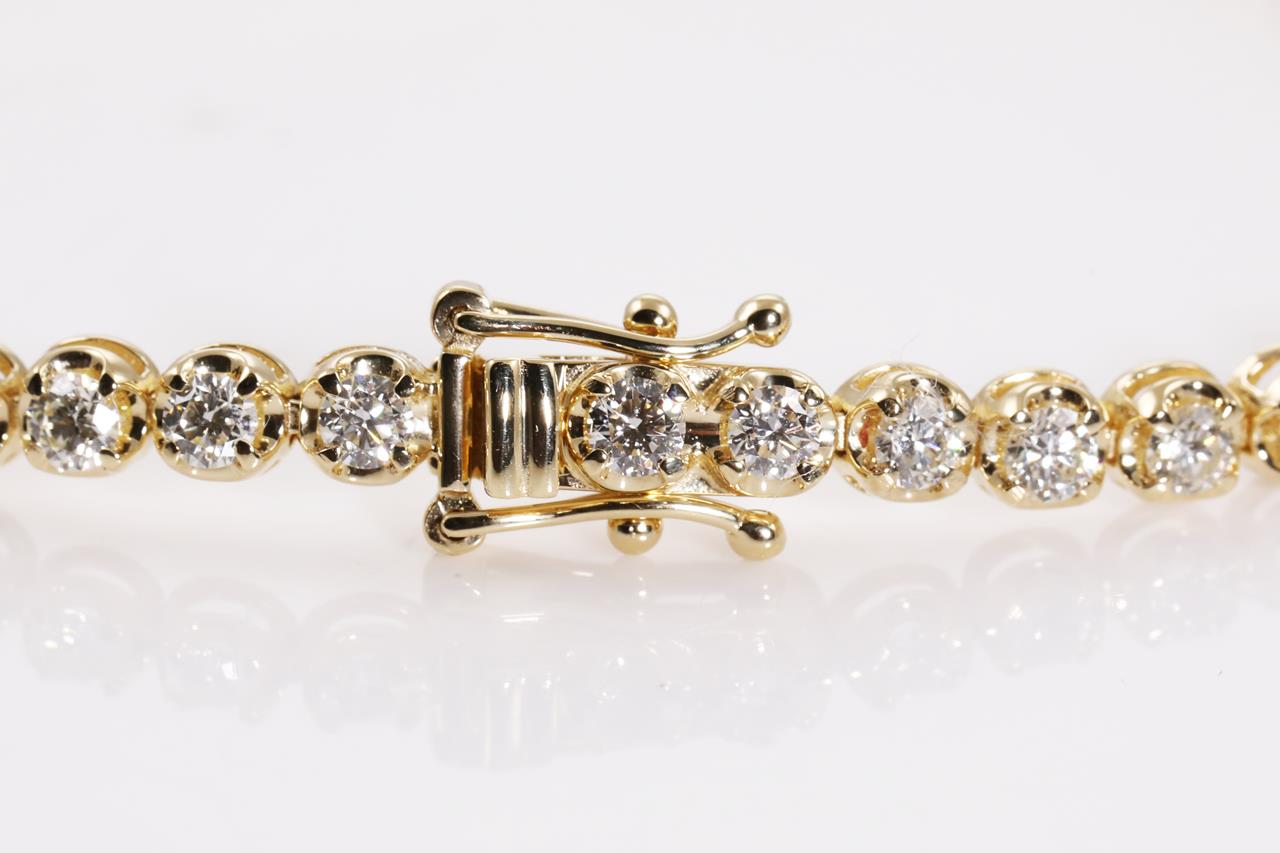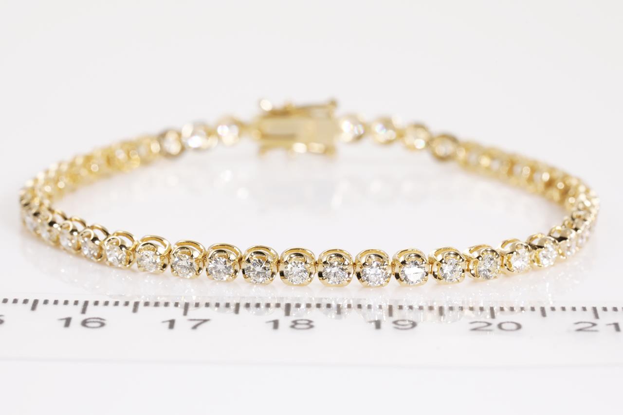 Diamond tennis bracelet with 47 round Diamonds totalling 3.05cts (Estimated grading: J VS). 18ct yellow gold. Length: 18cm. Weight: 8.3g. With Certificate #415037. (New)