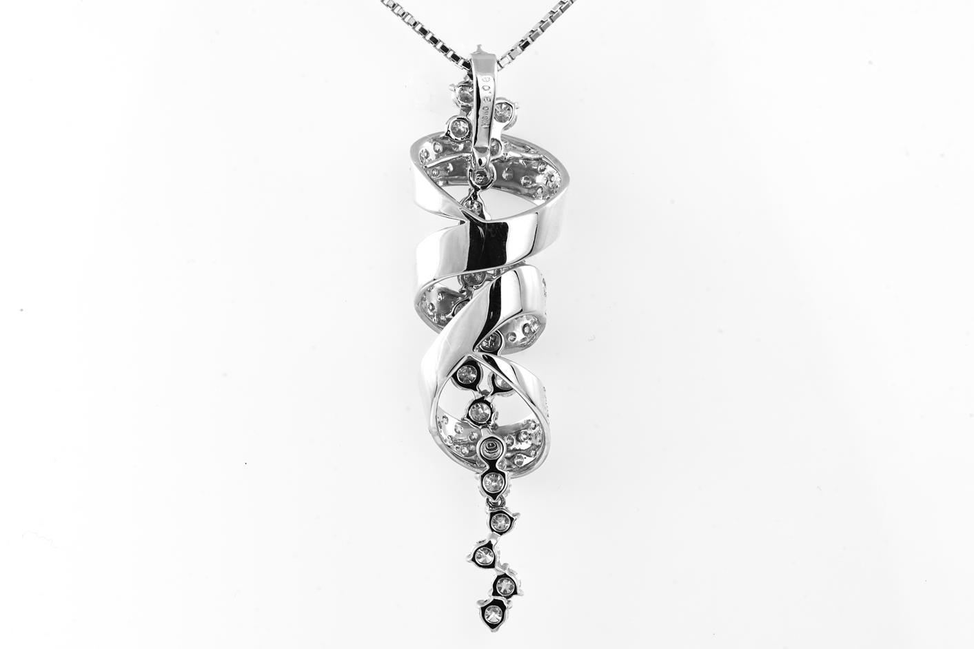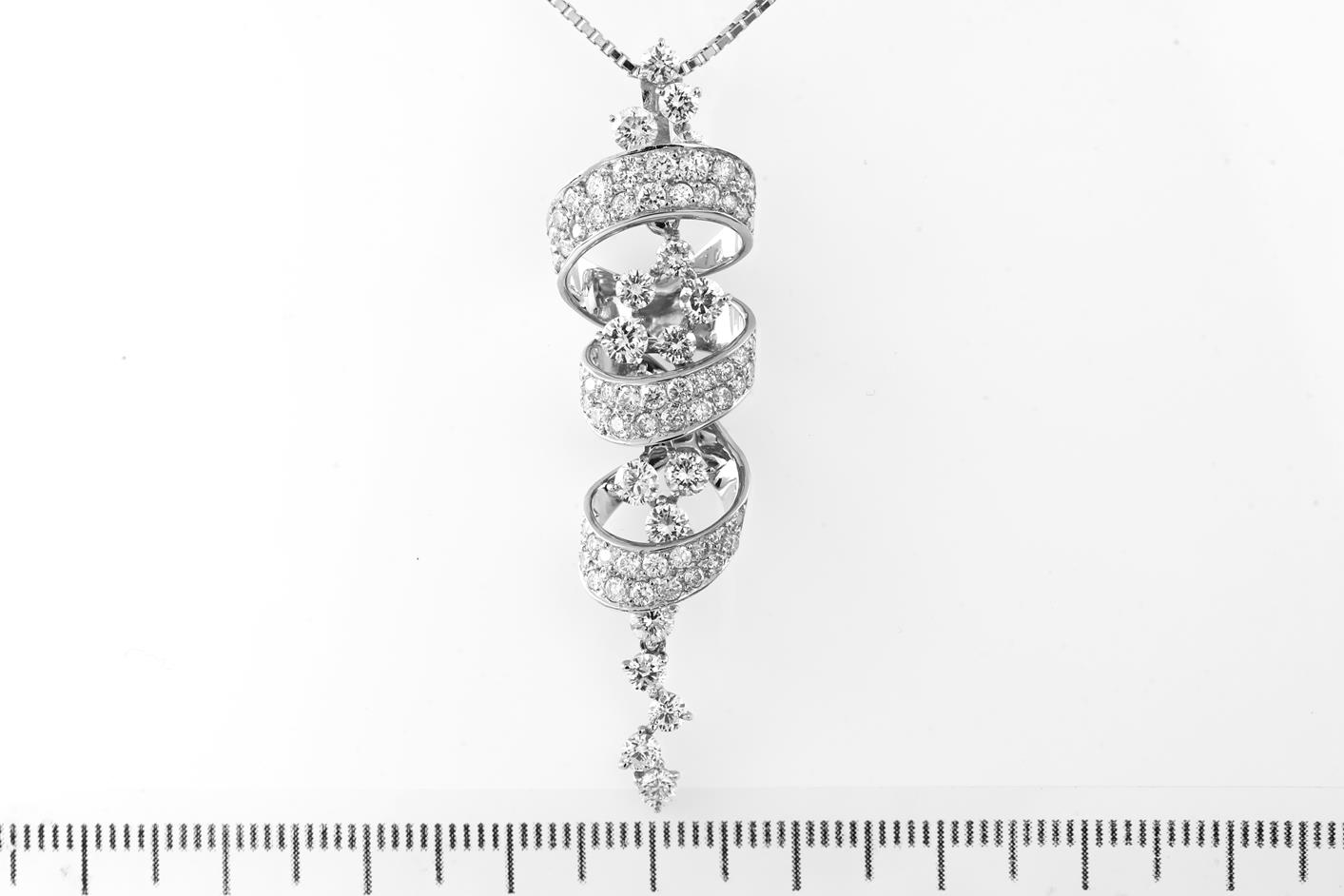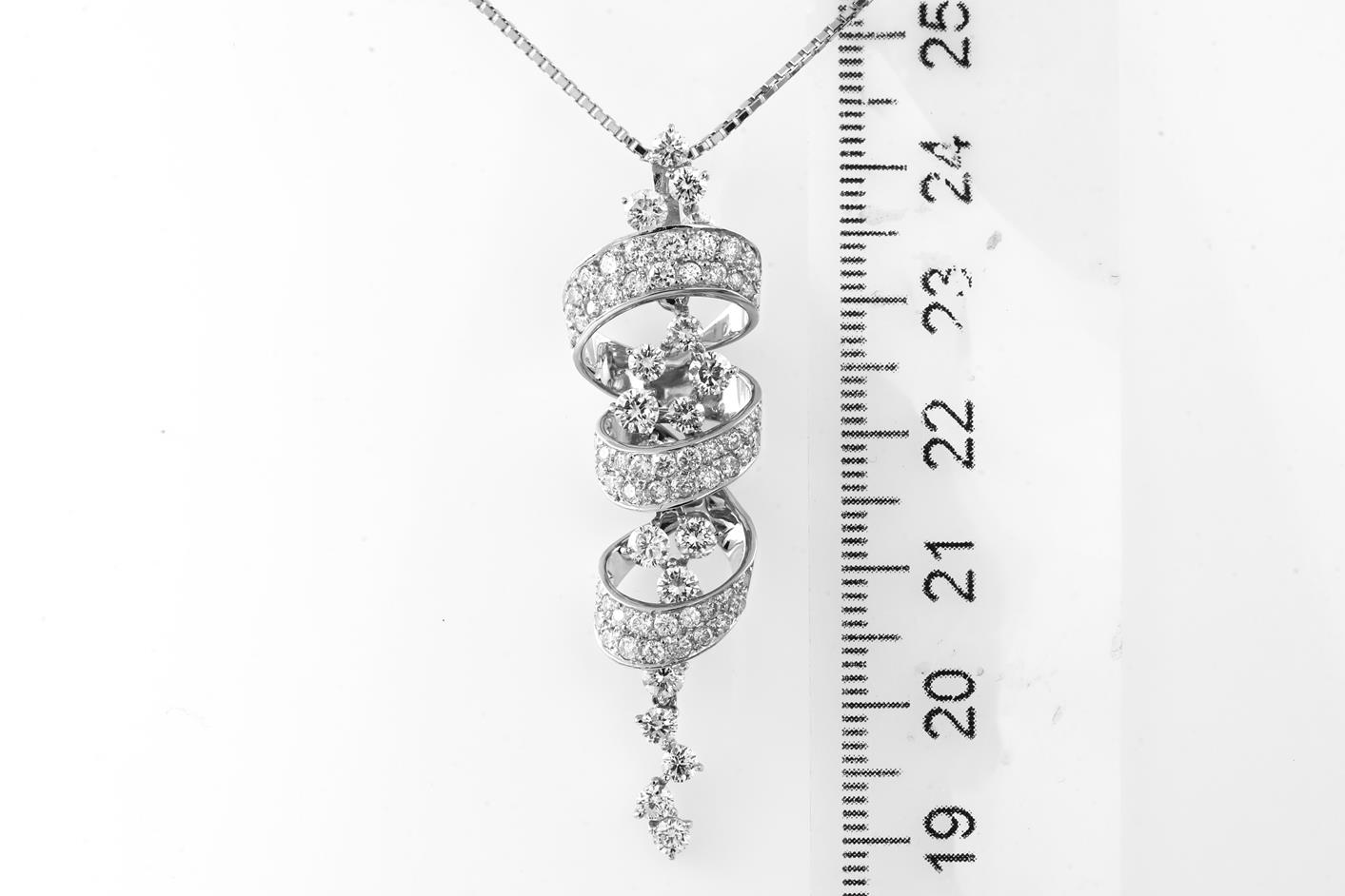Diamond dress pendant with round Diamonds totalling 3.06cts (Estimated grading: G SI). 18ct white gold with adjustable 44cm 18ct white gold chain. Weight: 10.4g. With certificate #415674. (Pre-owned)