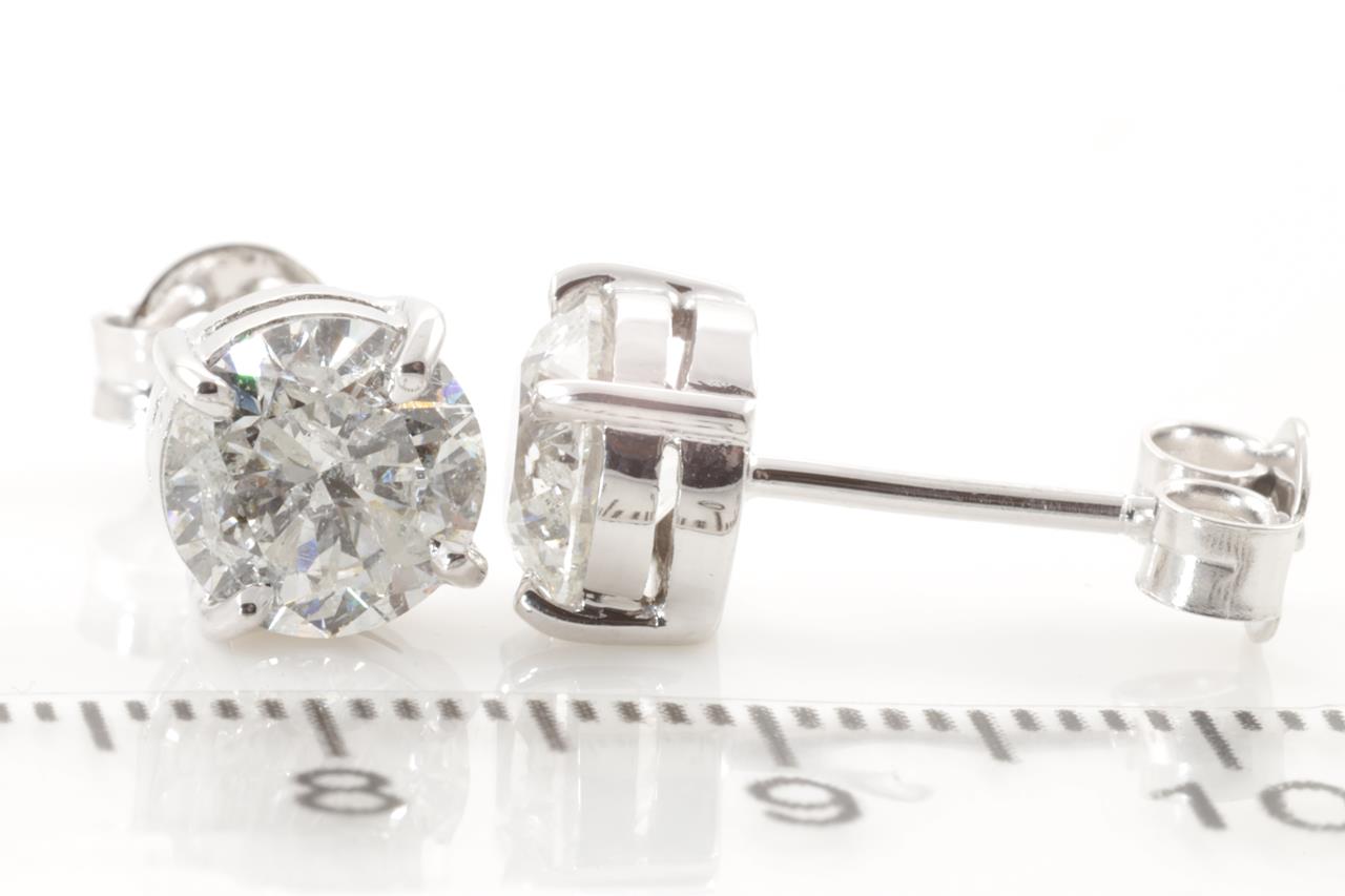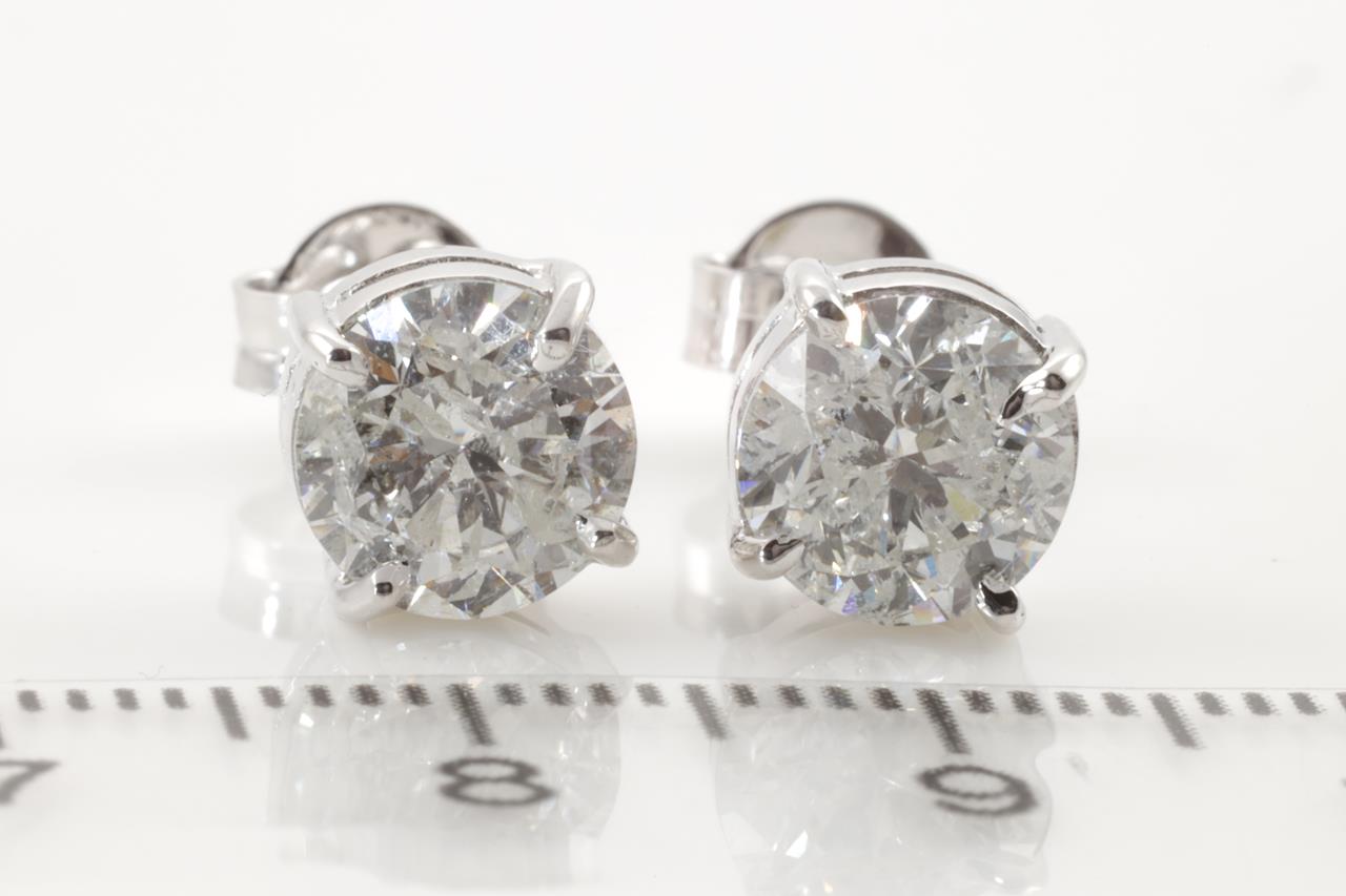 Diamond stud earrings with 2 round brilliant cut Diamonds totalling 3.06cts (Estimated grading: G P2). 18ct white gold. Weight: 3.8g. With certificate . (New).