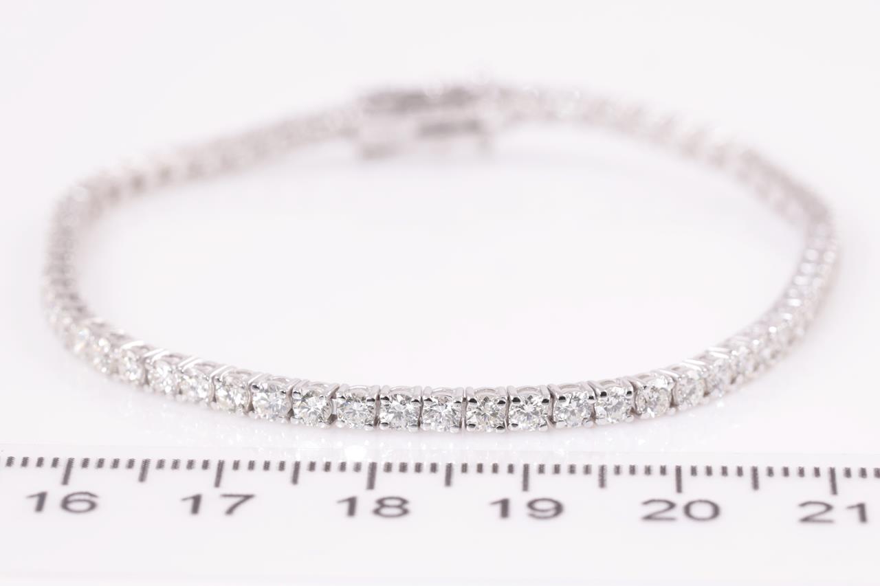 Diamond tennis bracelet with 47 round Diamonds totalling 3.06cts (Estimated grading: H-I SI). 18ct white gold. Length: 18.5cm. Weight: 8.5g. With certificate #414763. (New)