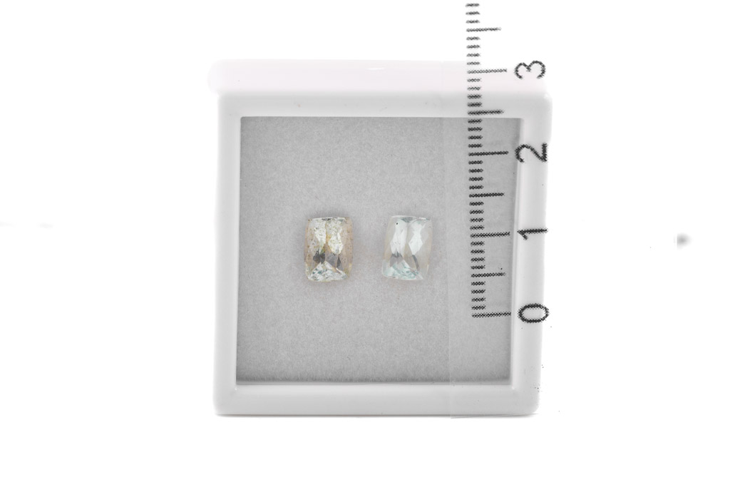 A Parcel of 2 loose cushion cut Aquamarines totalling 3.06cts. Size: 8.05x5.96x5.04mm, 7.98x5.82x4.60mm. (As New)