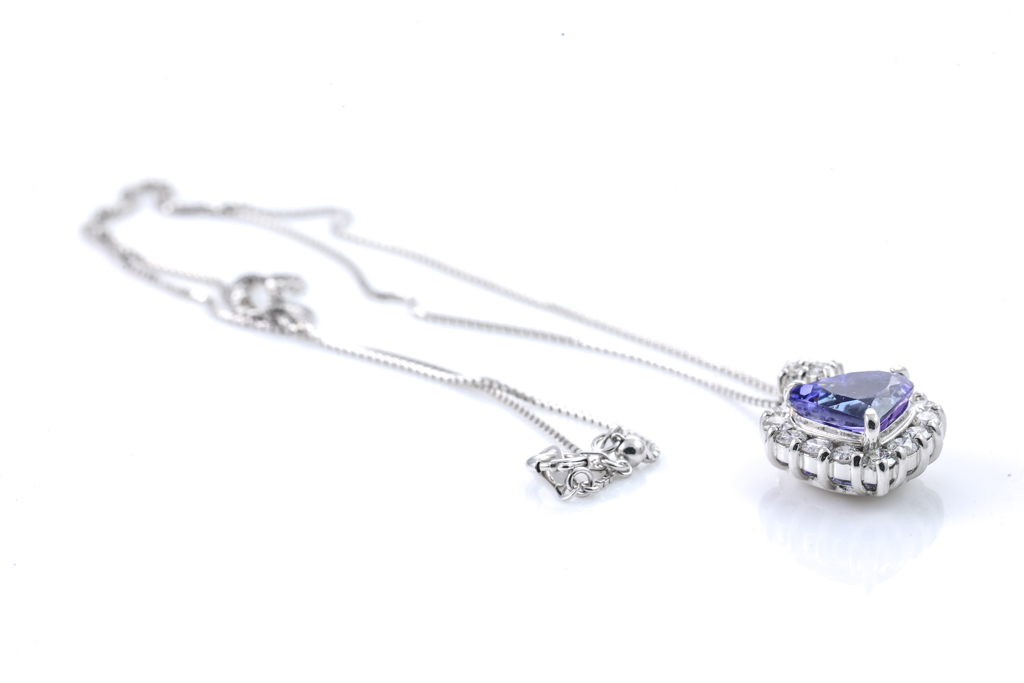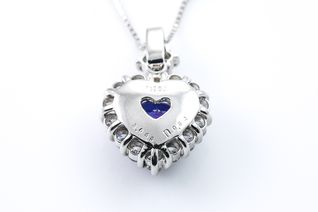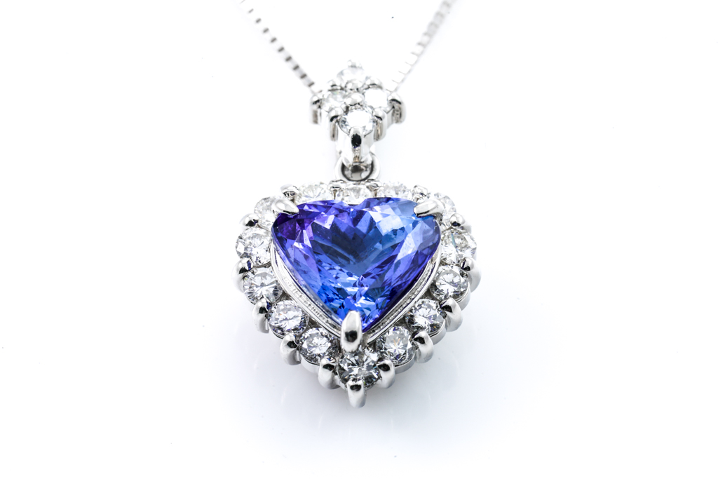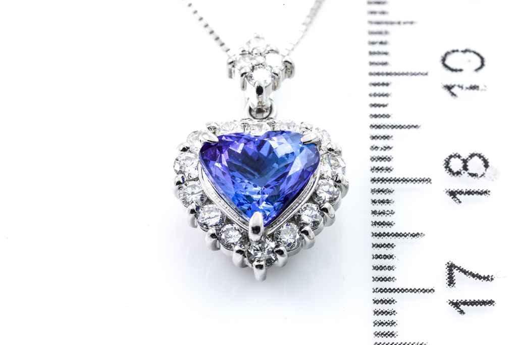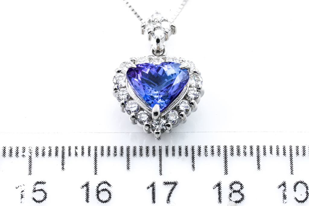 Tanzanite and Diamond pendant with heart shape Tanzanite of 3.06ct and Diamonds totalling 0.82cts (Estimated grading: H SI). Platinum with 18ct white gold 44cm chain. Weight: 8.2g. (Pre-owned)