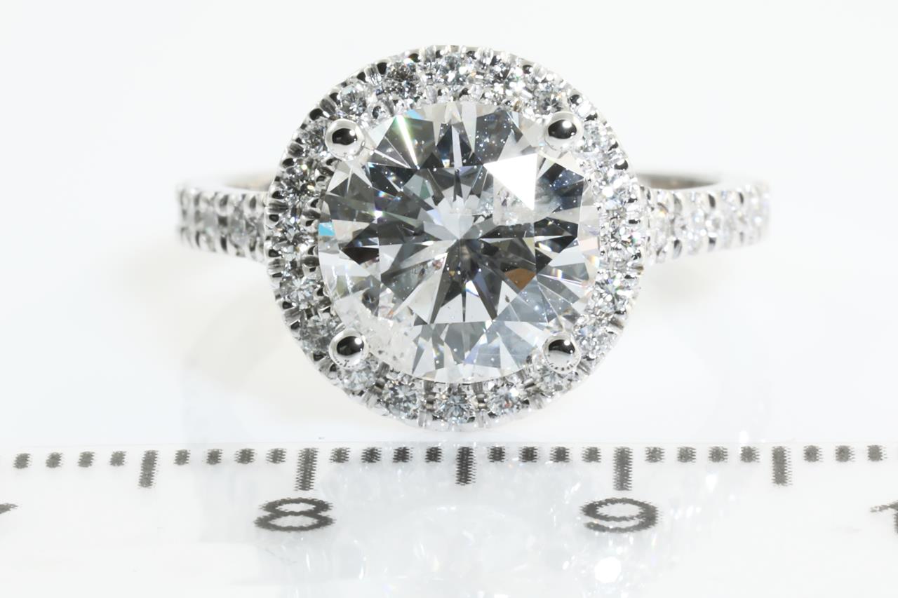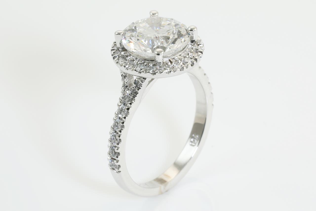 Diamond Ring with centre Round Brilliant Cut Diamond of 3.08ct (with GSL report graded as G P1 #AA64565/1) and surrounding Diamonds totalling 0.43. Ring size K1/2. Weight 5.5g. (New).