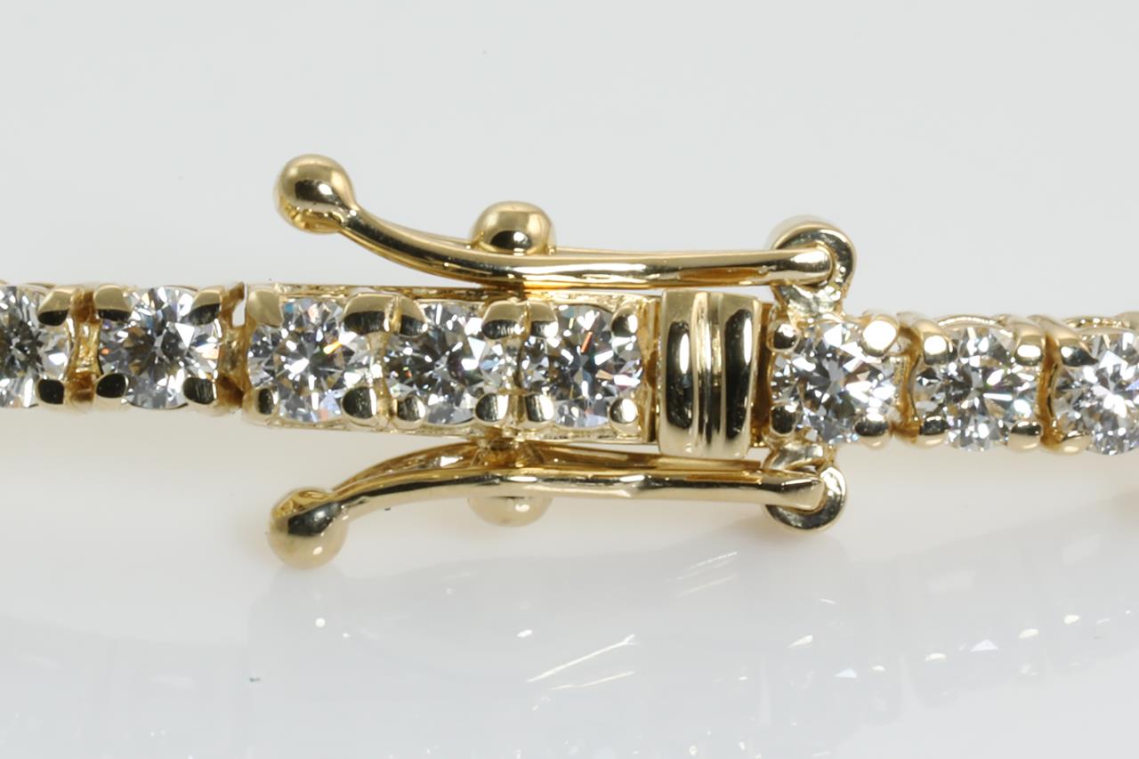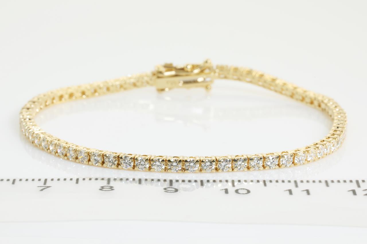 Diamond tennis bracelet with 69 round Diamonds totalling 3.09cts (Estimated grading: I-J SI). 18ct yellow gold. Length: 18cm Weight: 8.4g With certificate #414107. (New)
