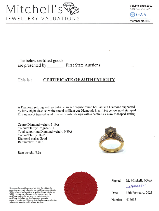 3.10ct Fancy Light Brown Diamond Ring | First State Auctions