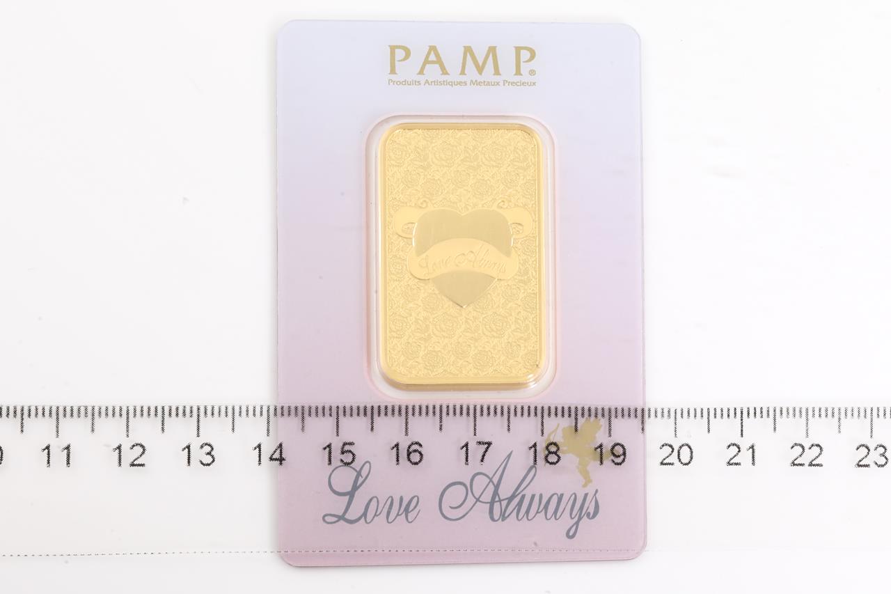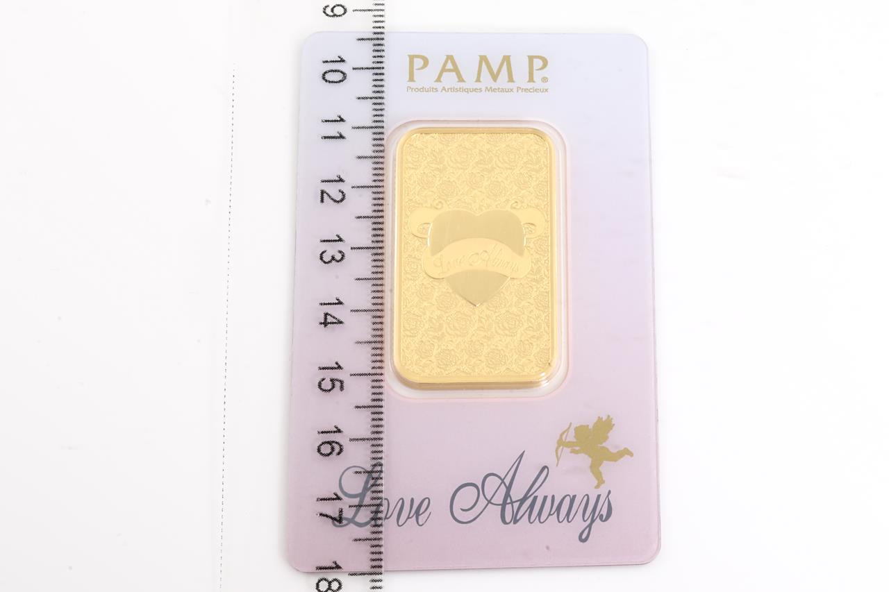 A PAMP Fine Gold Bar. Weight: 1 ounce: 31.1g. Serial number C000795. ***Gold bullion attracts no GST and no Buyers Premium***
