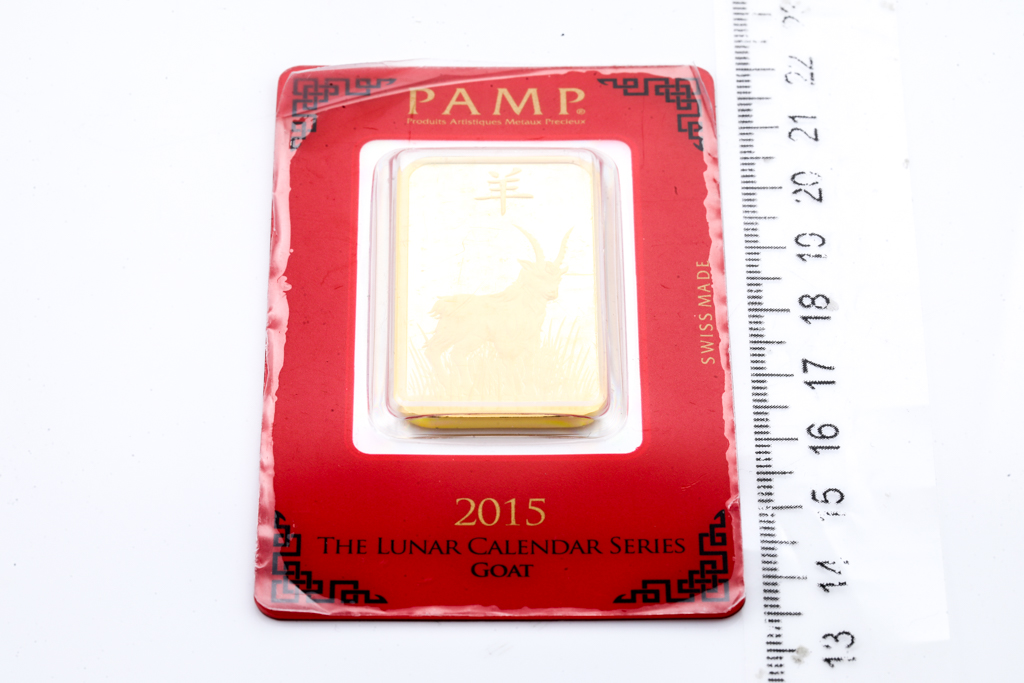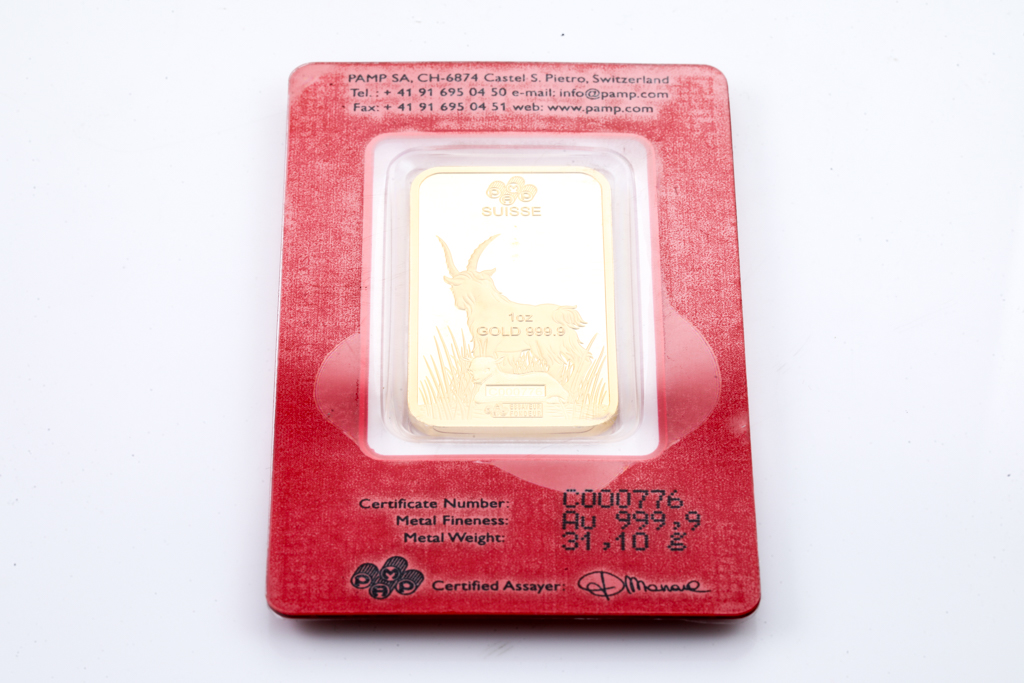 A PAMP Fine Gold Bar. Weight: 1 ounce: 31.1g. Serial number C000776. ***Gold bullion attracts no GST and no Buyers Premium. Available for shipping within Australia only***