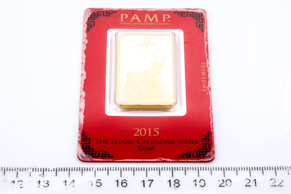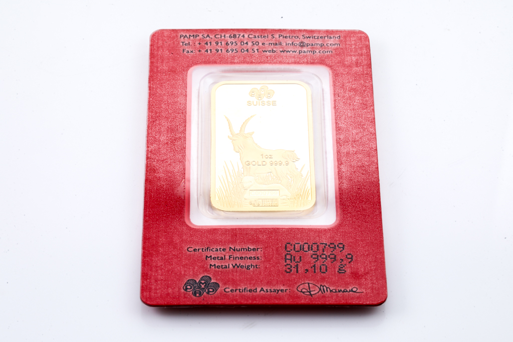 A PAMP Fine Gold Bar. Weight: 1 ounce: 31.1g. Serial number C000799. ***Gold bullion attracts no GST and no Buyers Premium. Available for shipping within Australia only***