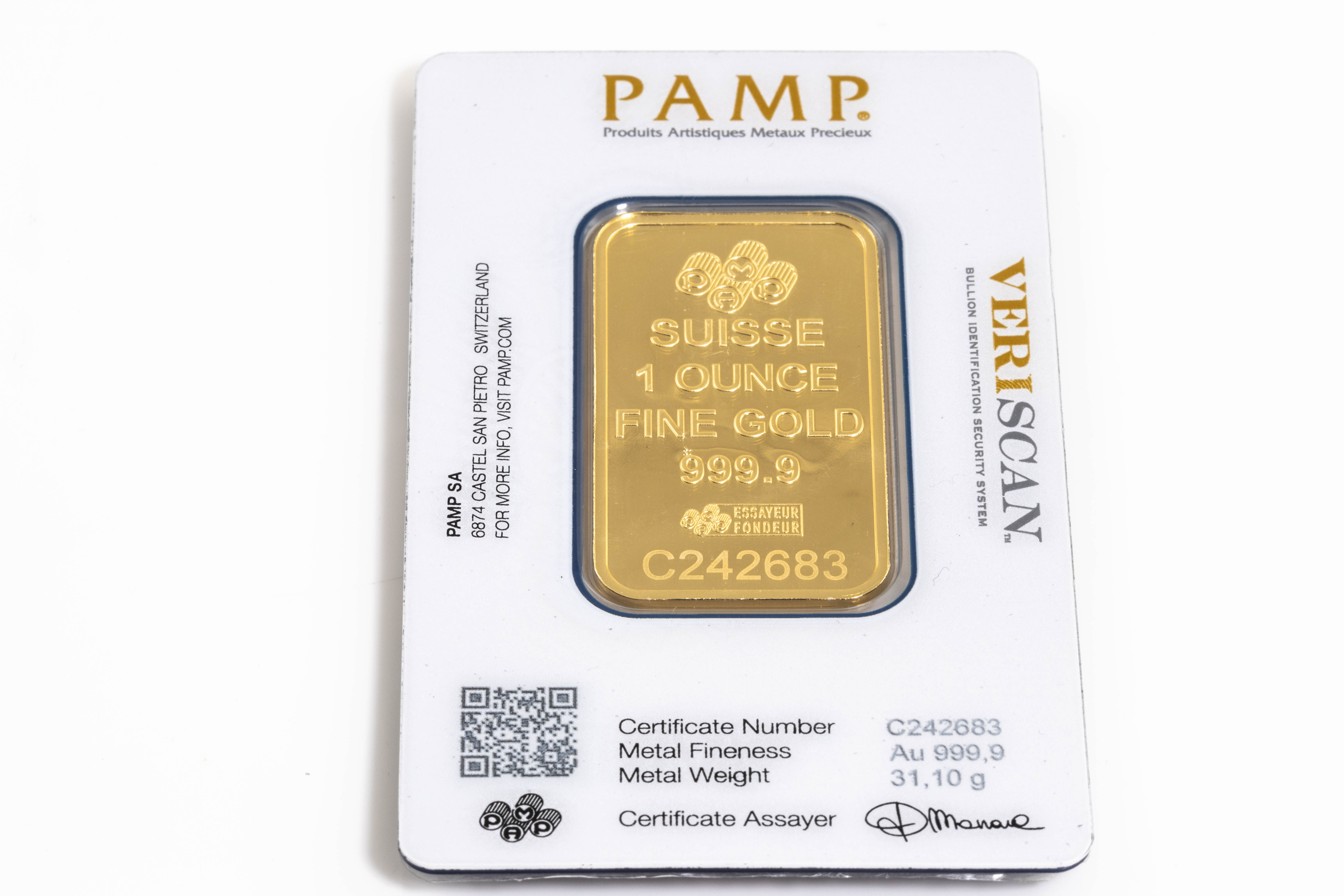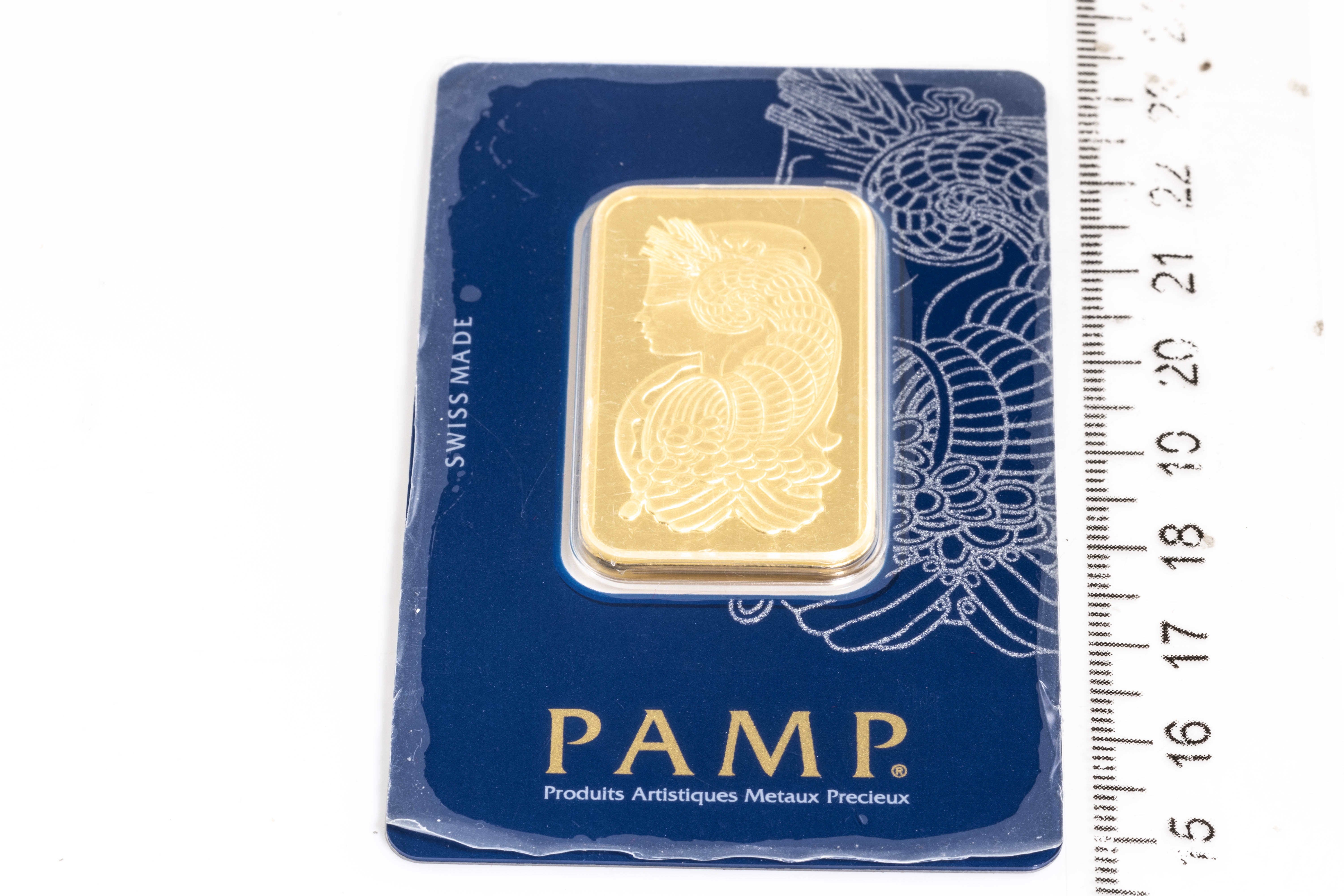 A PAMP Fine Gold Bar. Weight: 1 ounce: 31.1g. Serial number C242683. ***Gold bullion attracts no GST and no Buyers Premium. Available for shipping within Australia only***