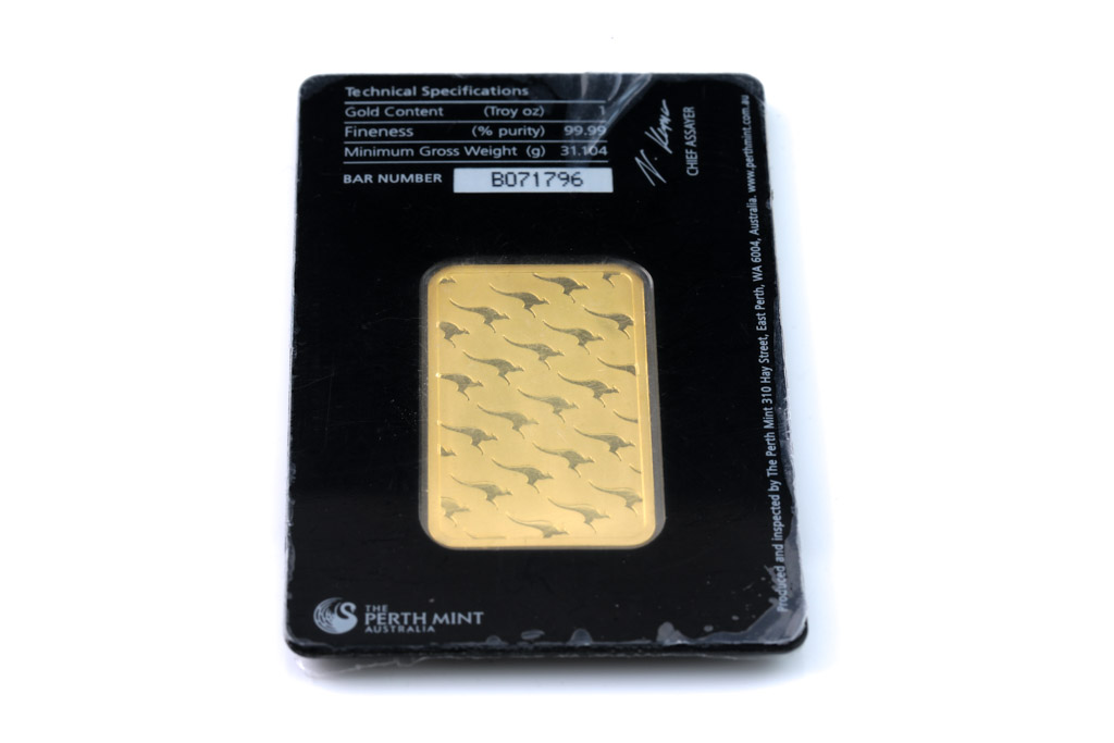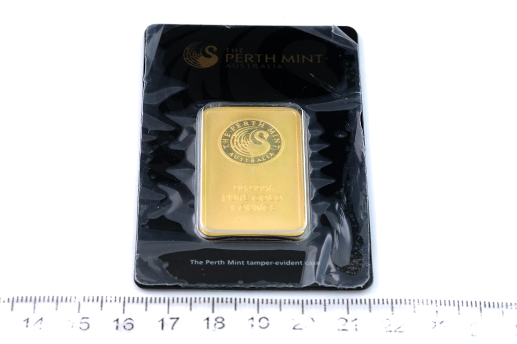 A Perth Mint Fine Gold Bar. Weight: 1 ounce: 31.1g. Serial number B071796. ***Gold bullion attracts no GST and no Buyers Premium. Available for shipping within Australia only***