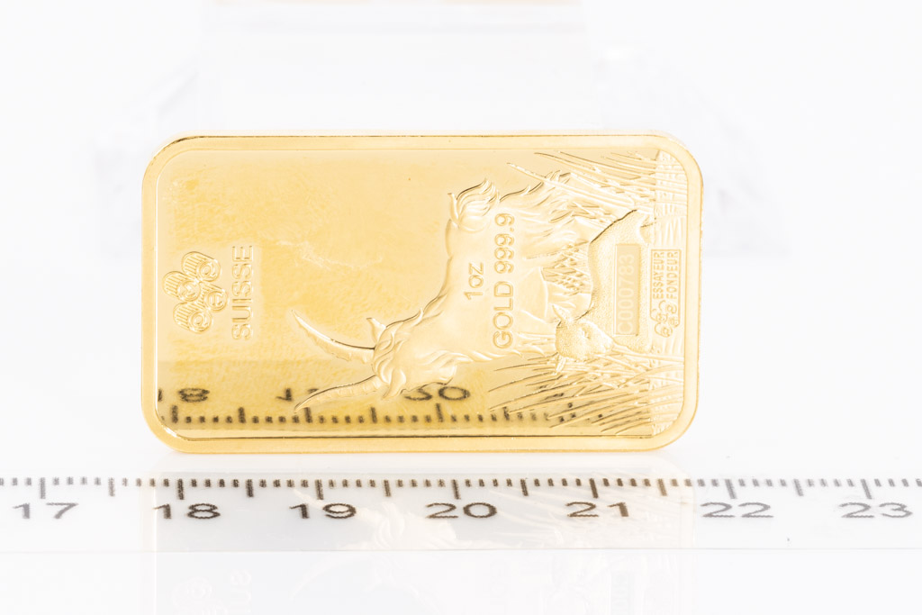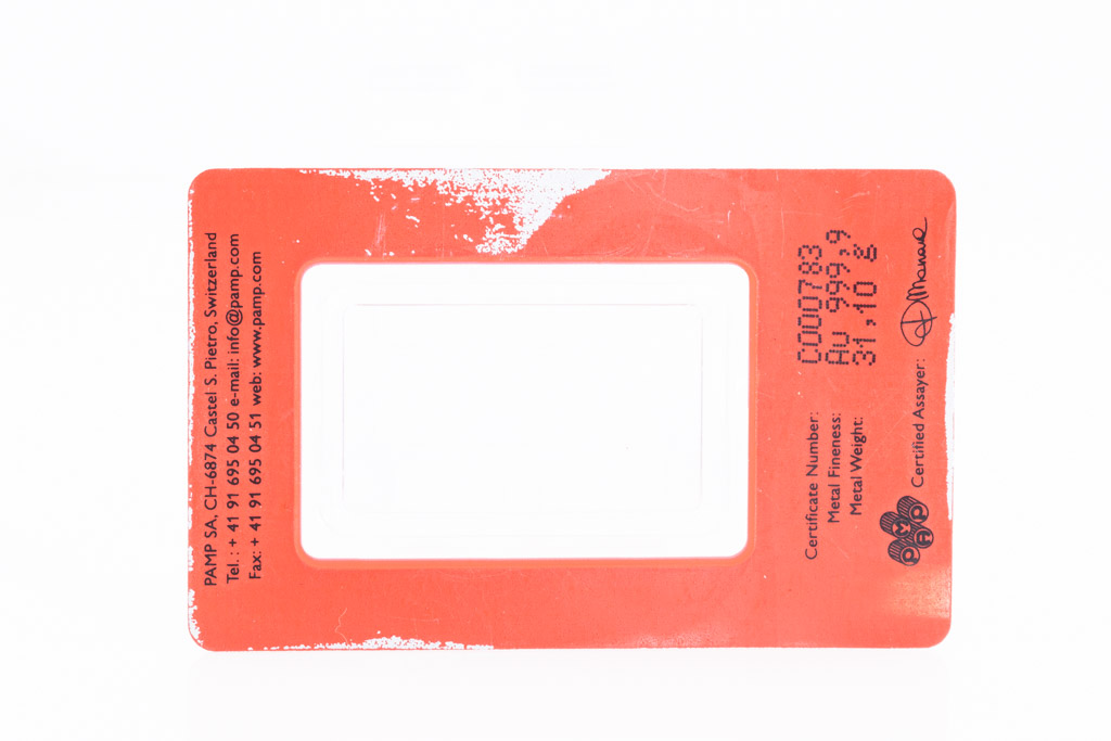 A PAMP Fine Gold Bar. Weight: 1 ounce: 31.1g. Serial number C000783. Unsealed. ***Gold bullion attracts no GST and no Buyers Premium. ***