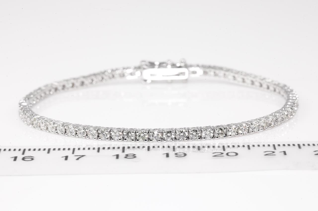 Diamond tennis bracelet with 69 round Diamonds totalling 3.13cts (Estimated grading: H-I SI). 18ct white gold. Length: 18cm. Weight: 8.3g. With certificate #415173. (New)