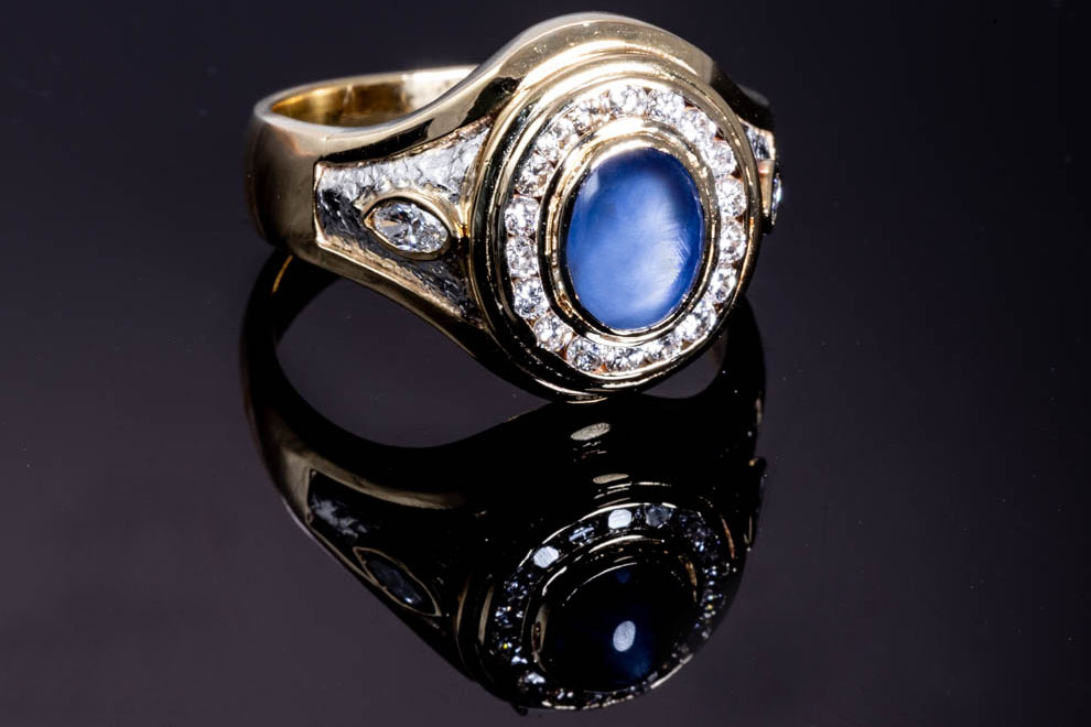 3.14ct Star Sapphire and Diamond Mens Ring