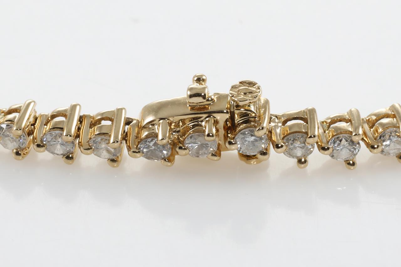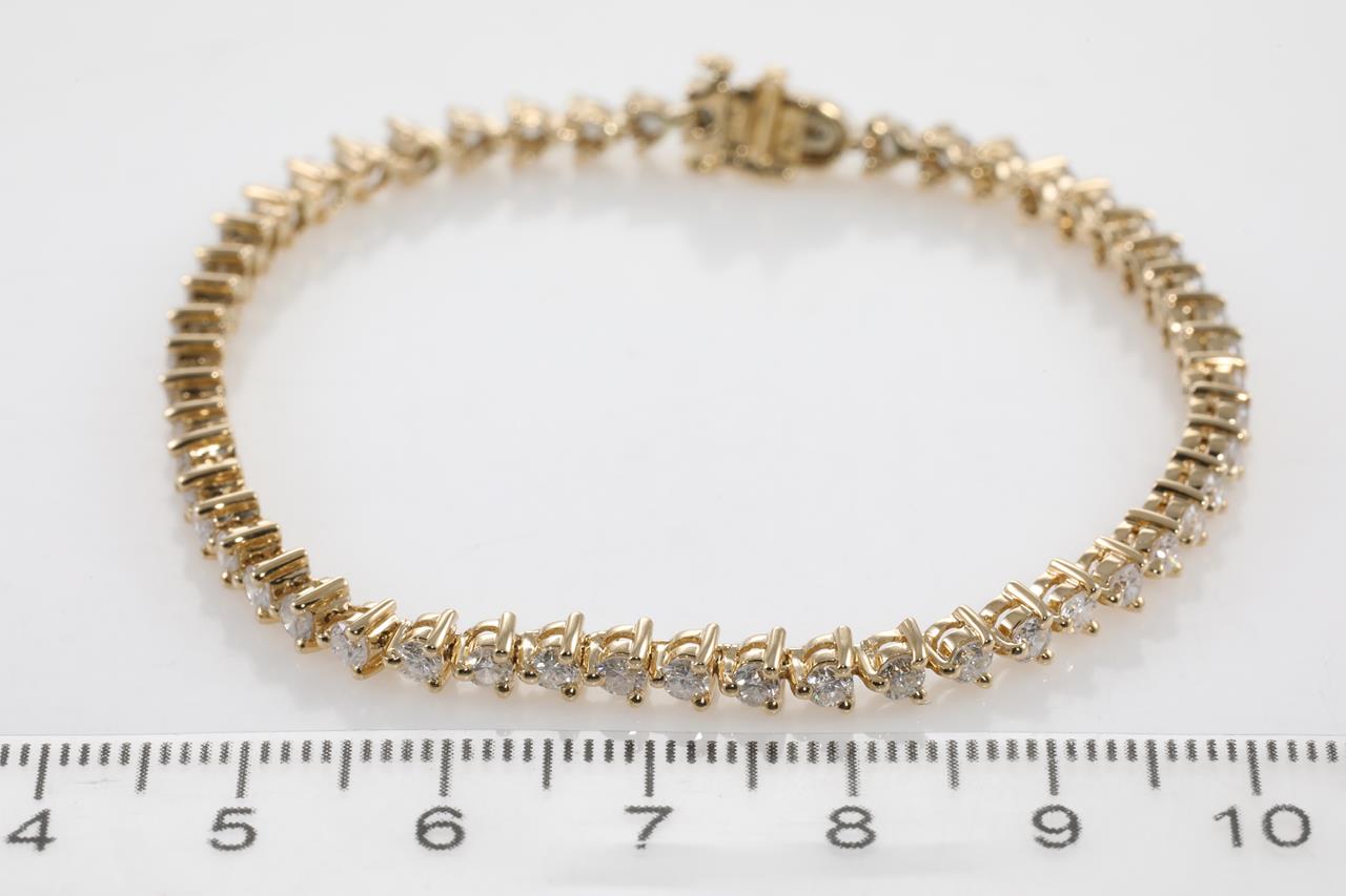 Diamond tennis bracelet with round Diamonds totalling approximately 3.15cts (Estimated grading: H P1). 14ct yellow gold, Weight: 9.3g. Length: 17.5cm. (Pre-owned)