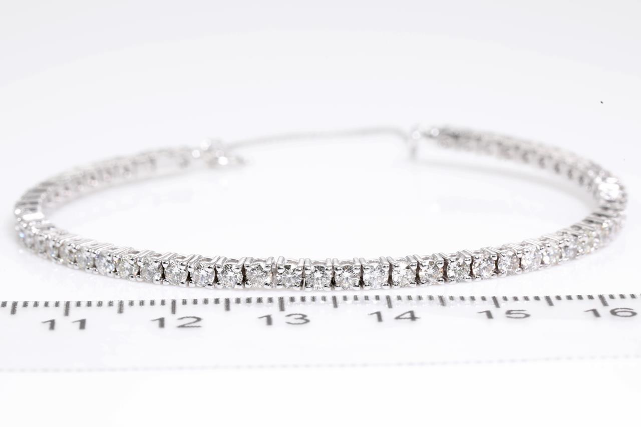 Diamond Cuff Flexible bangle with round diamonds totalling 3.17cts (Estimated grading: GHI SI. 18ct white gold, with 18ct gold safety chain. Inner circumference: 16cm (Note the bangle is flexible. Weight: 8.5g (Pre-owned)