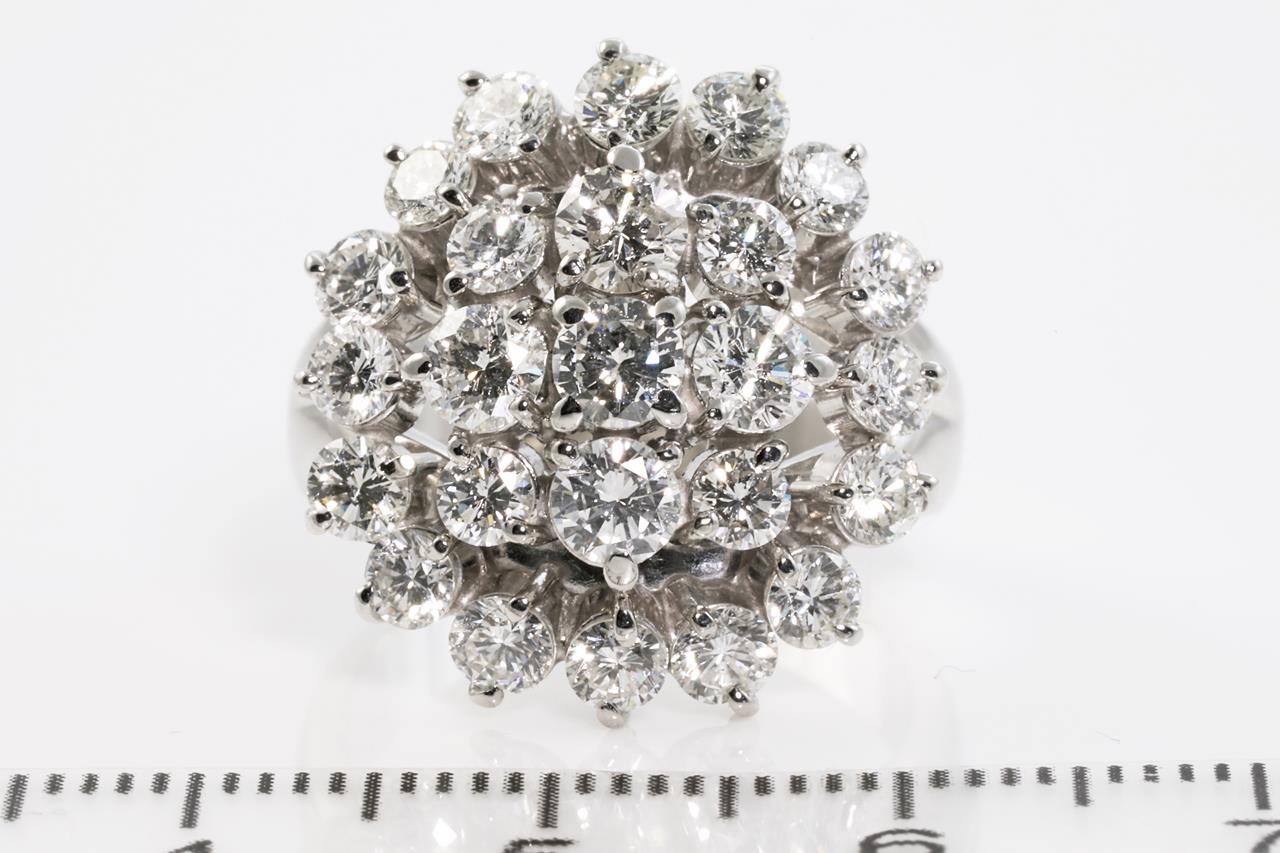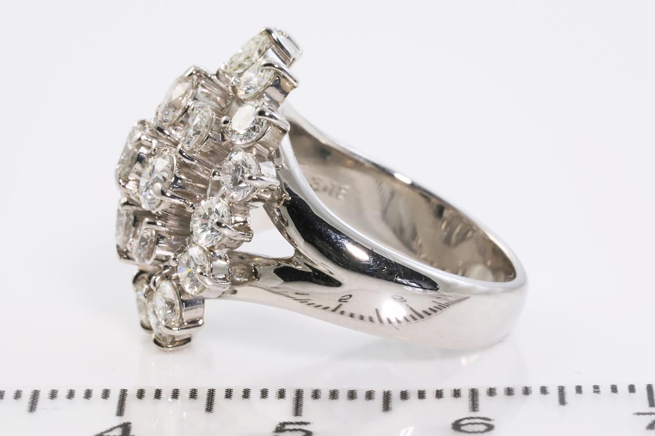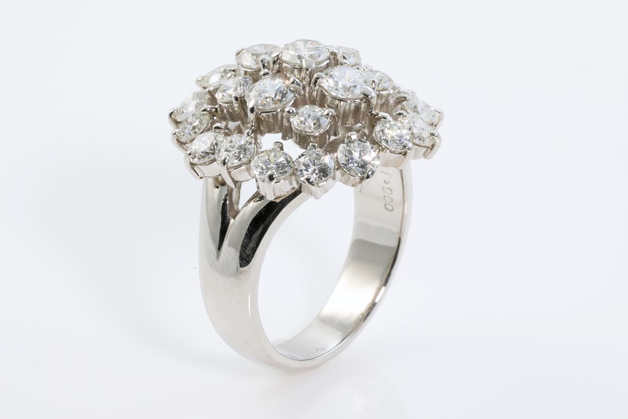 Diamond Dress ring with round Diamonds totalling 3.18cts (Estimated grading: G-H SI). Platinum. Ring size: L1/2. With certificate: #413672. Weight: 13.6g (Pre-owned)