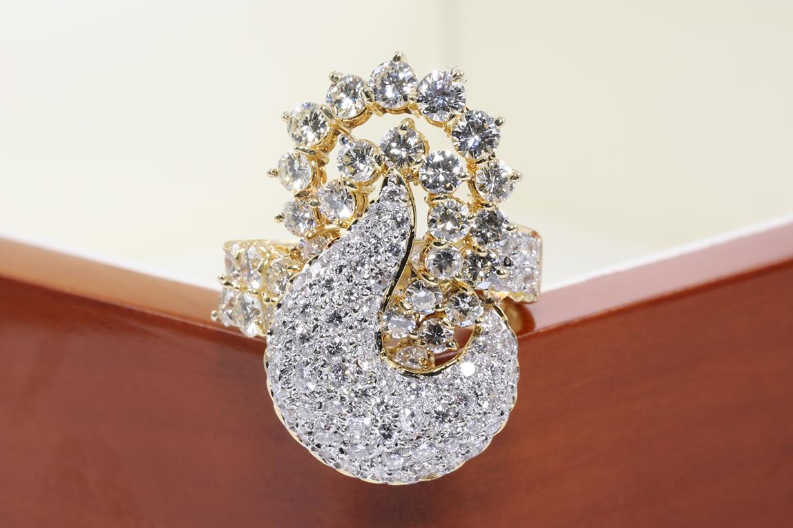 Diamond Dress ring with round Diamonds totalling 3.19cts (Estimated grading: G-J VS-SI). 18ct yellow & white gold. Ring size N. Weight: 9.8g (Pre-owned)
