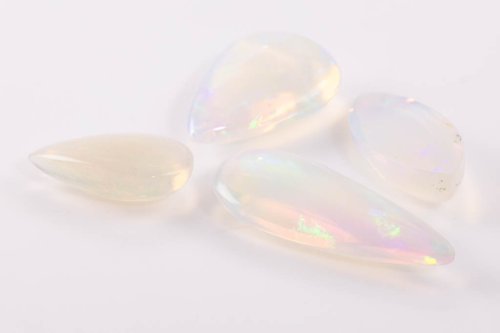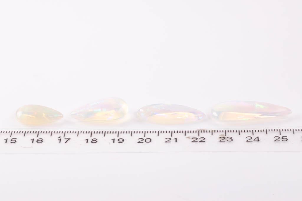 A loose parcel of 4 pear shape cabochon cut Crystal Opals totalling 32.25cts. (As New)