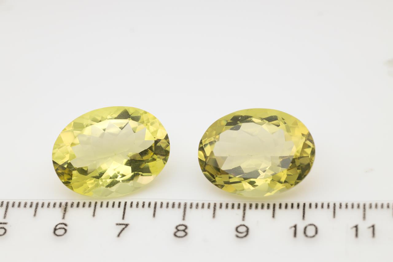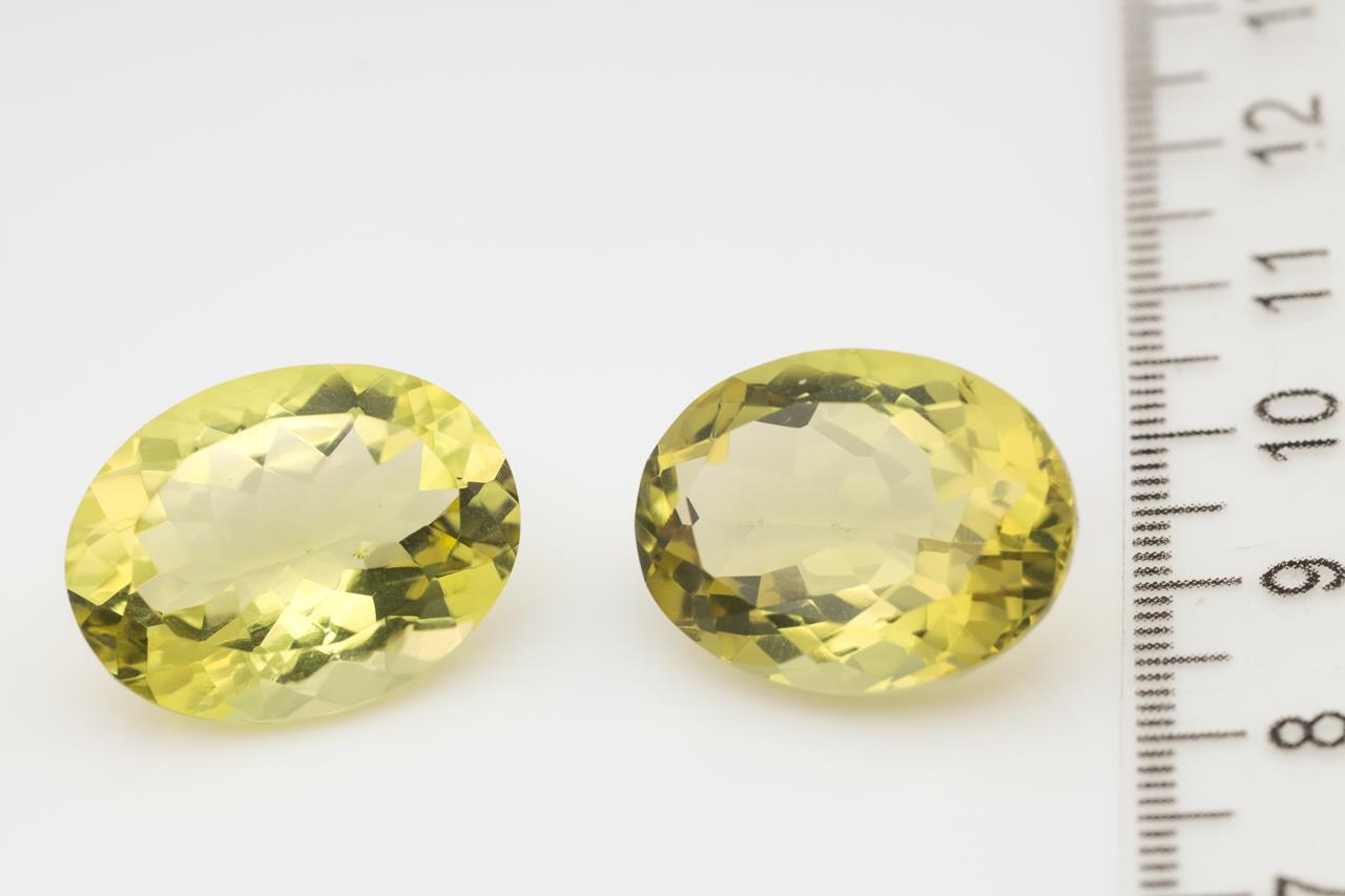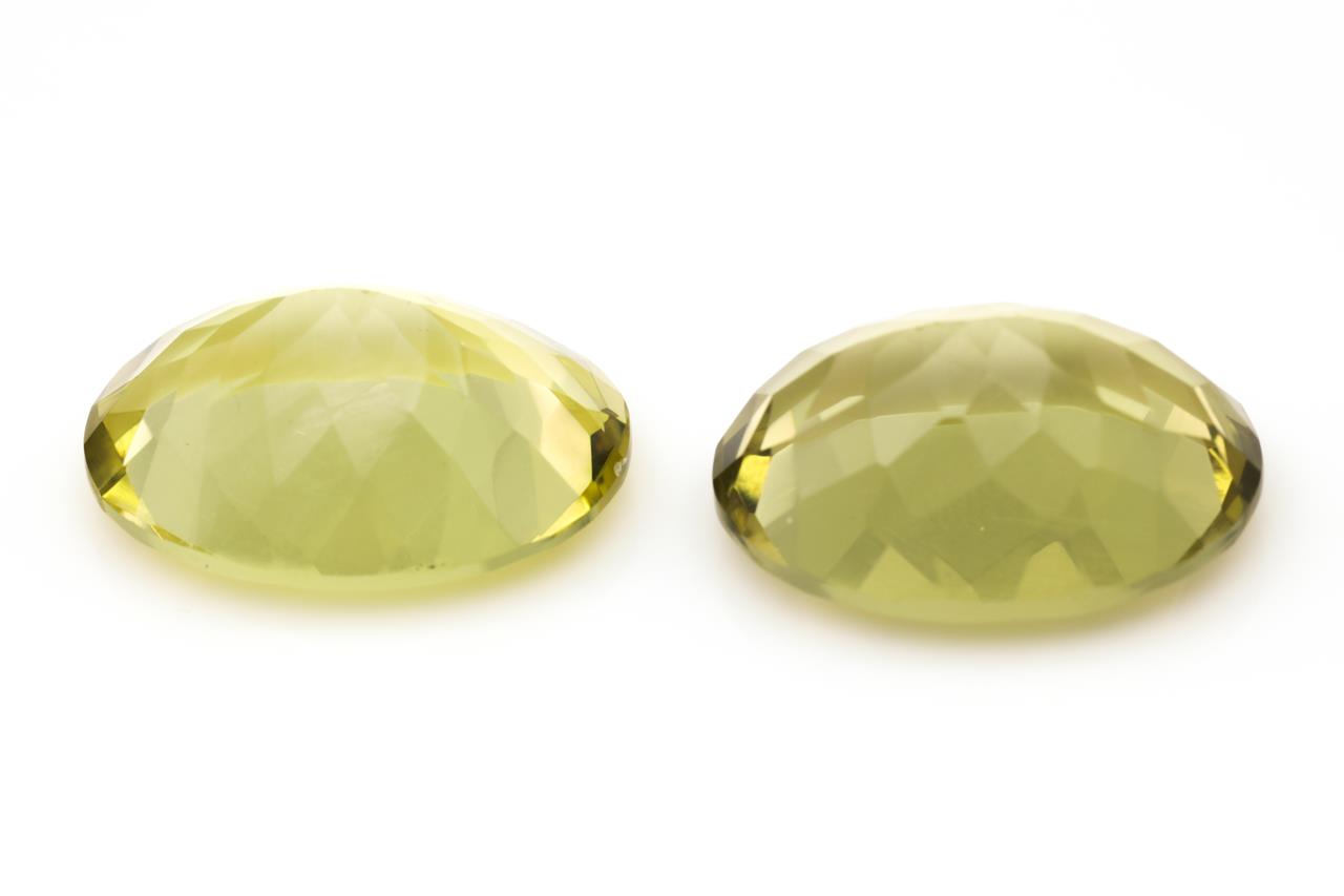 2 Loose oval Lemon Quartz totalling 32.43ct. Approximate size: 20.0 x 15.1 x 9.2mm. (New)