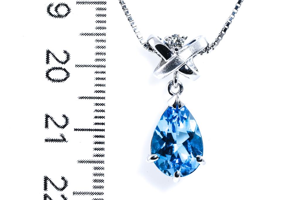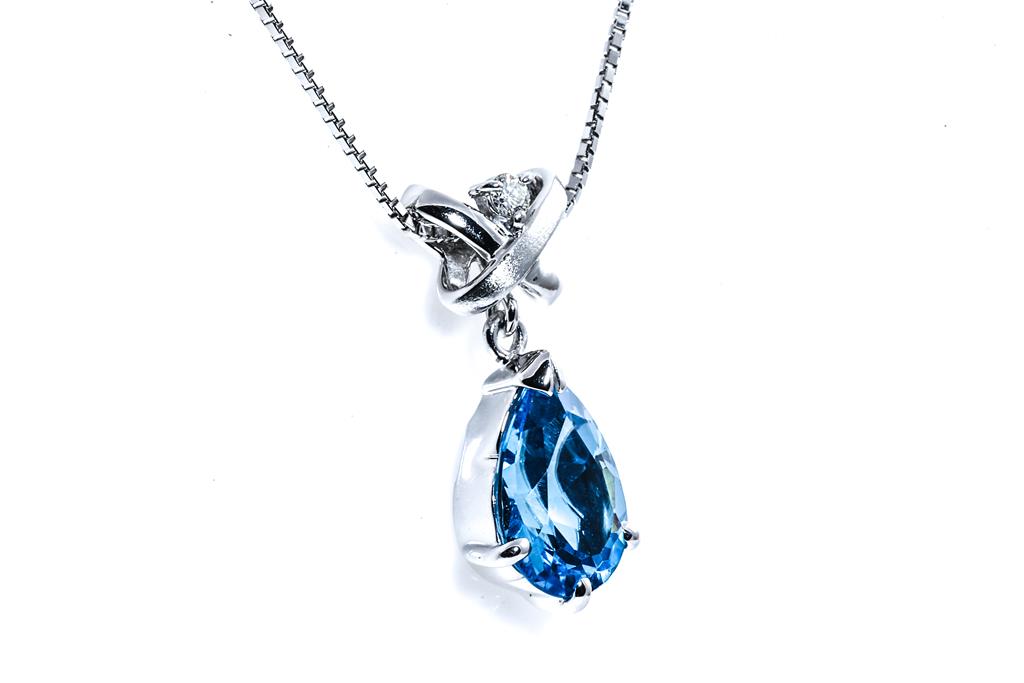 Topaz and Diamond pendant with pear shape Blue