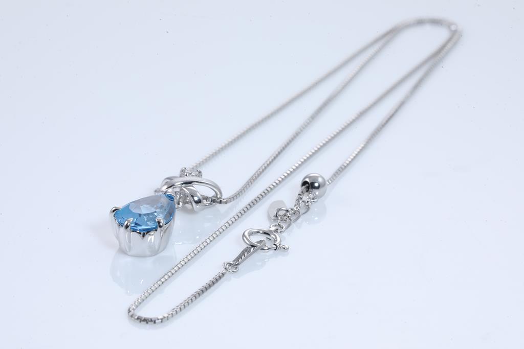 Topaz of 3.24ct and a round Diamond of 0.05ct. 18ct white gold with 18ct white gold adjustable chain. Length: 44cm. Weight: 7.3g. (Pre-owned)