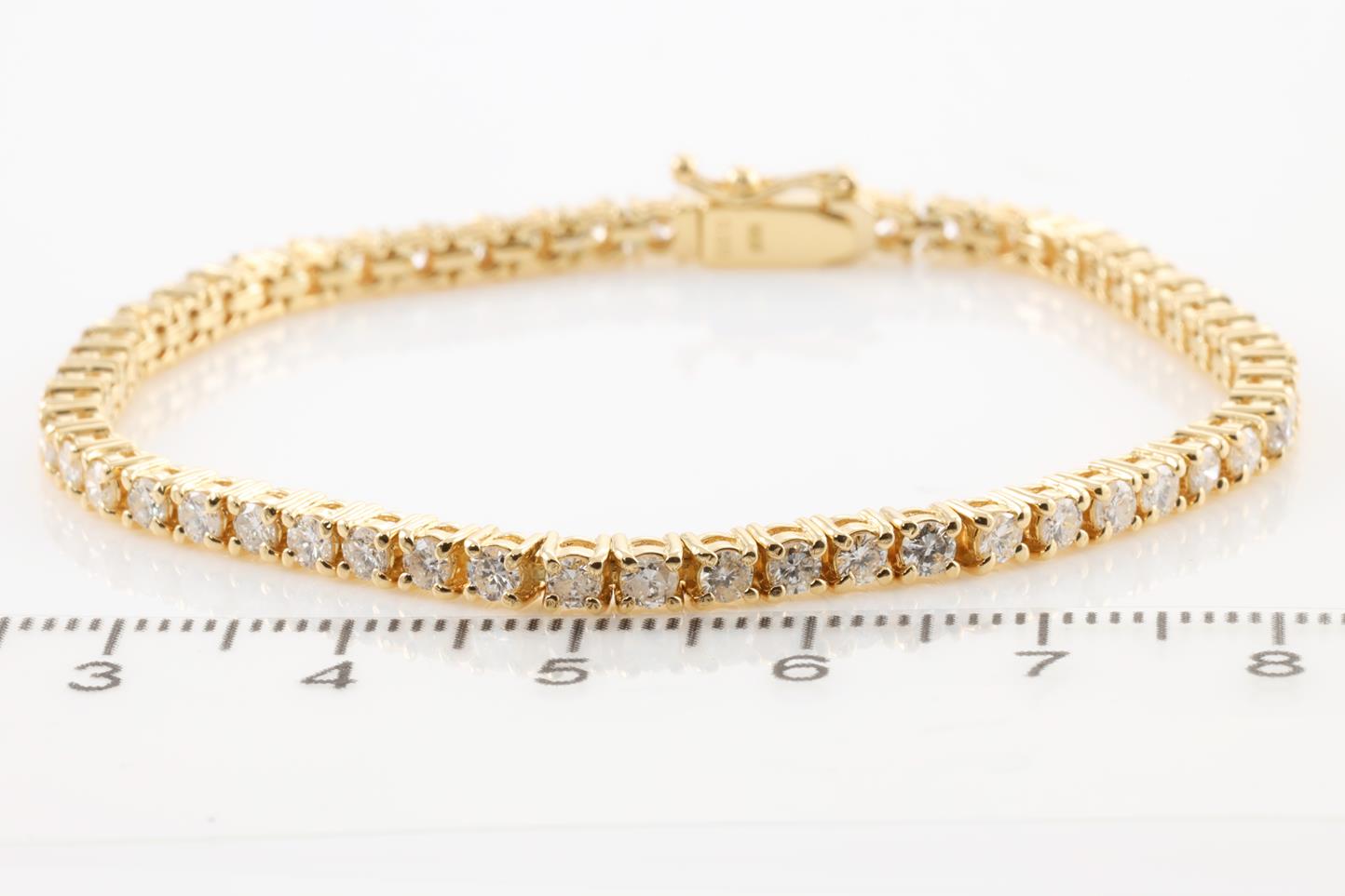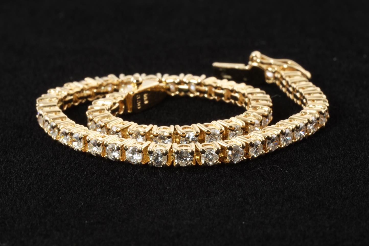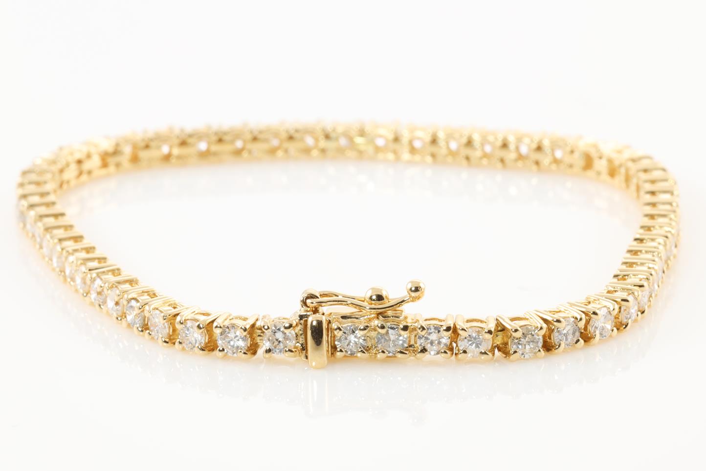 Diamond tennis bracelet with round Diamonds totalling 3.30cts (Estimated grading: H P2). 18ct yellow gold. Length: 16cm. Weight: 10.4g. (Pre-owned)