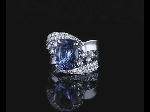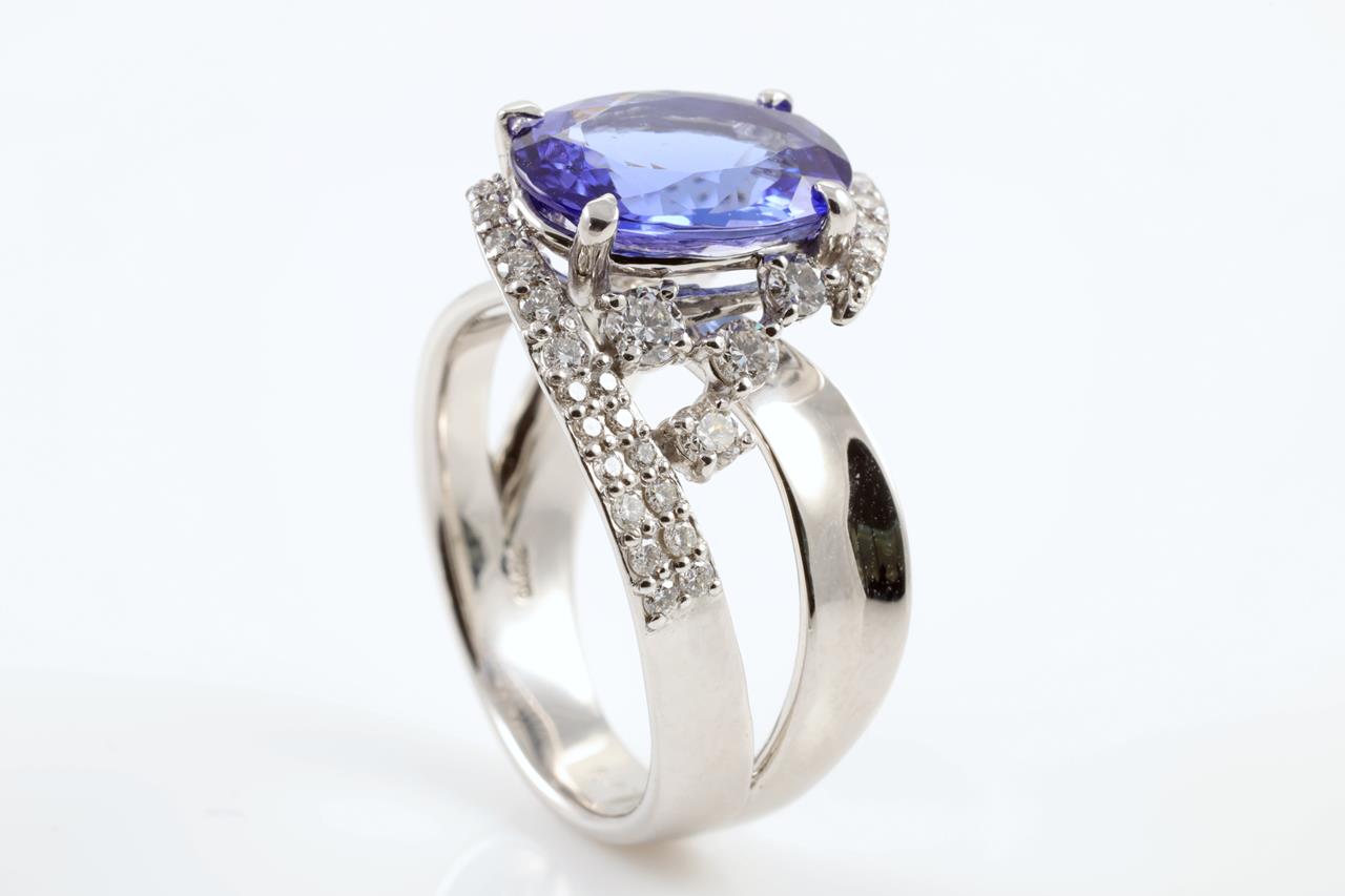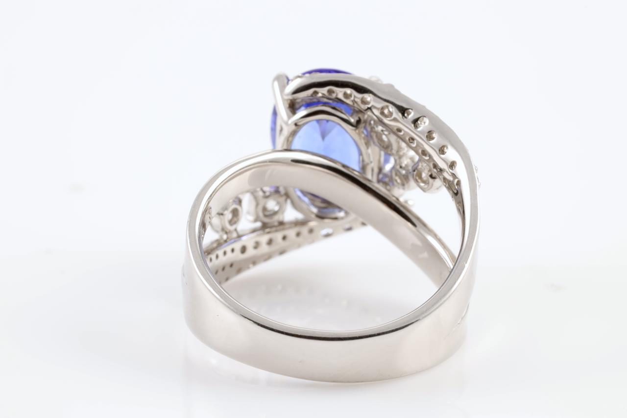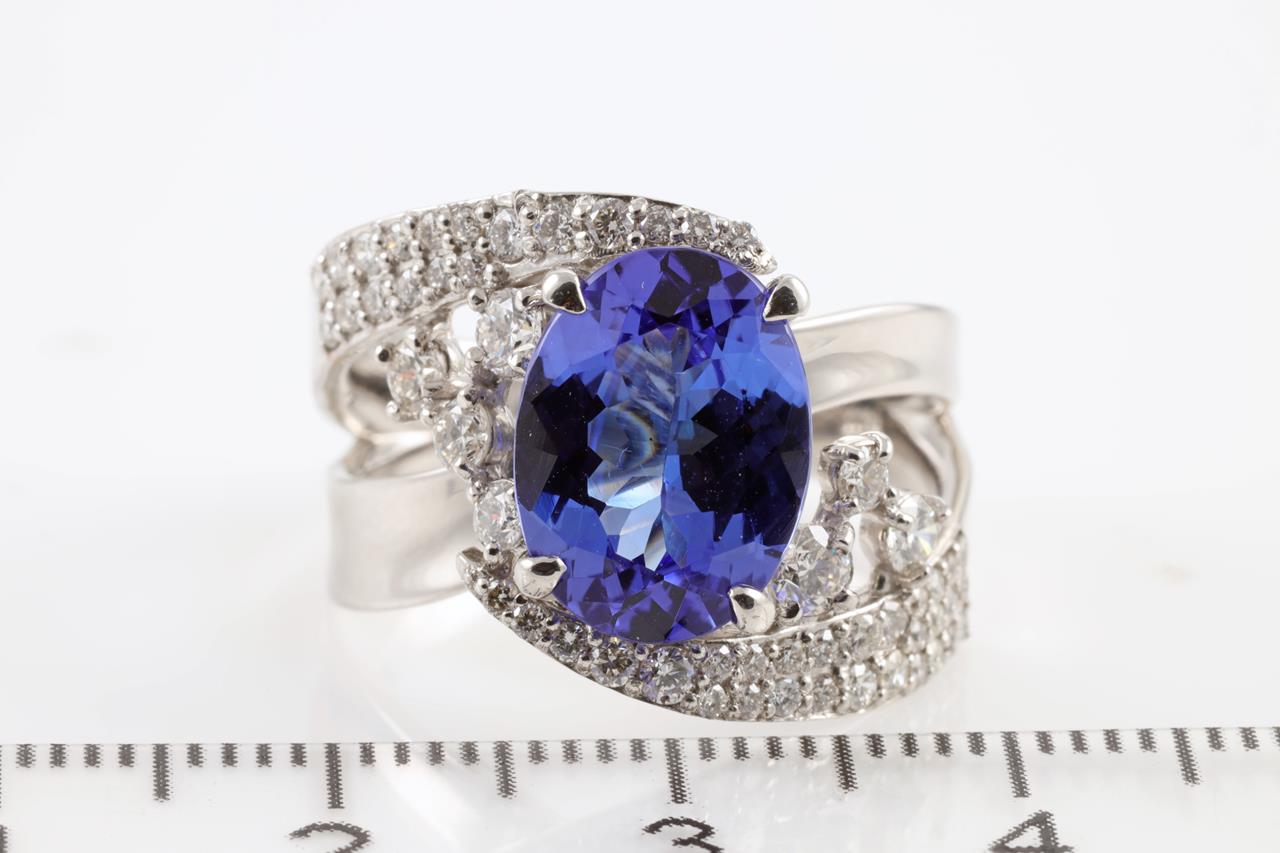 Tanzanite and Diamond ring with oval Tanzanite of 3.31ct and Diamonds totalling 0.76cts (Estimated grading: H SI). Platinum. Ring size: N. Weight: 10.4g (Pre-owned)