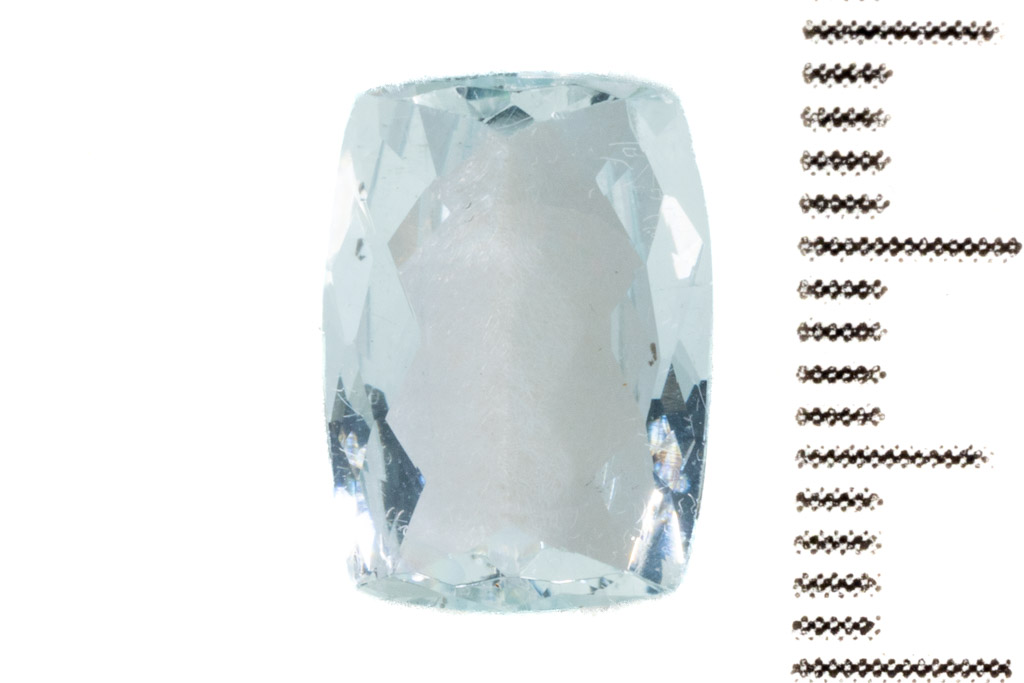 A loose cushion cut Aquamarine of 3.37ct. Approximate dimensions: 12.91 x 8.04 x 4.15mm (As New)