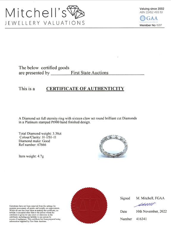 3.38ct Diamond Eternity Ring | First State Auctions