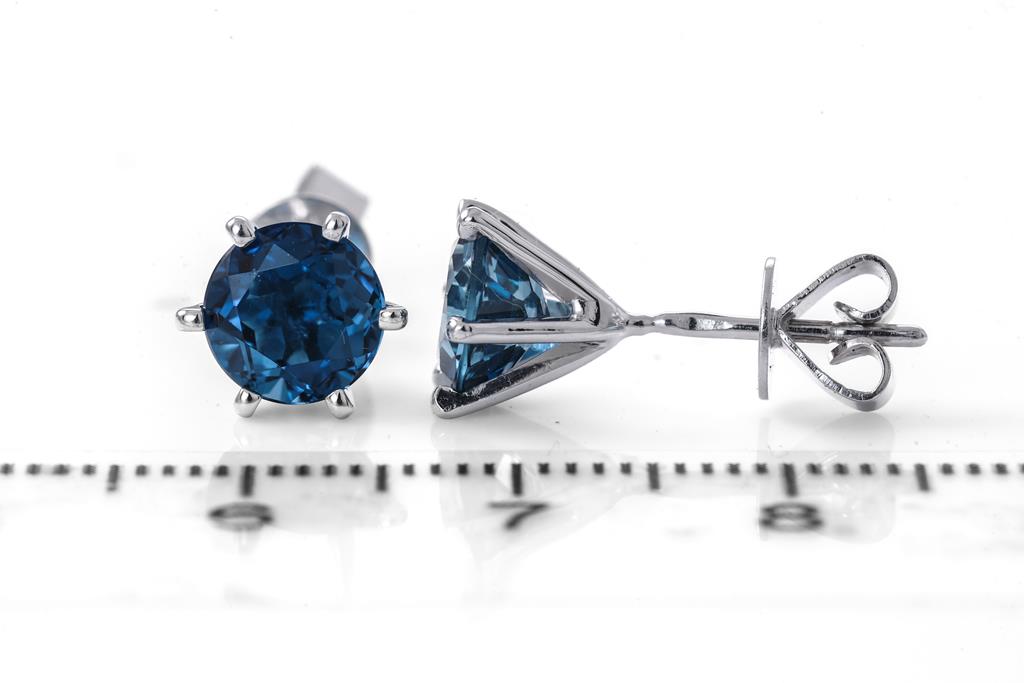 Stud earrings with 2 round London Blue Topaz totalling 3.38cts. 18ct white gold. Weight: 2.6g. (Pre-owned)