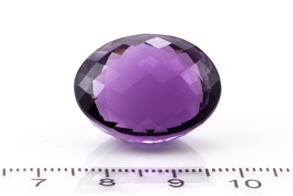 A loose oval shape Amethyst of 34.14ct. Dimensions: 22.5mm x 17.9mm x 14.6mm. (As new)
