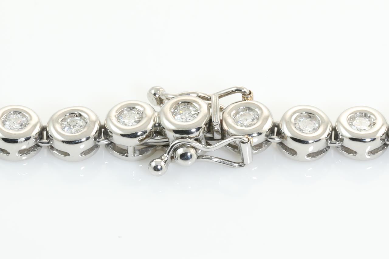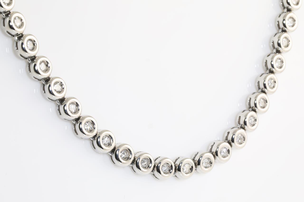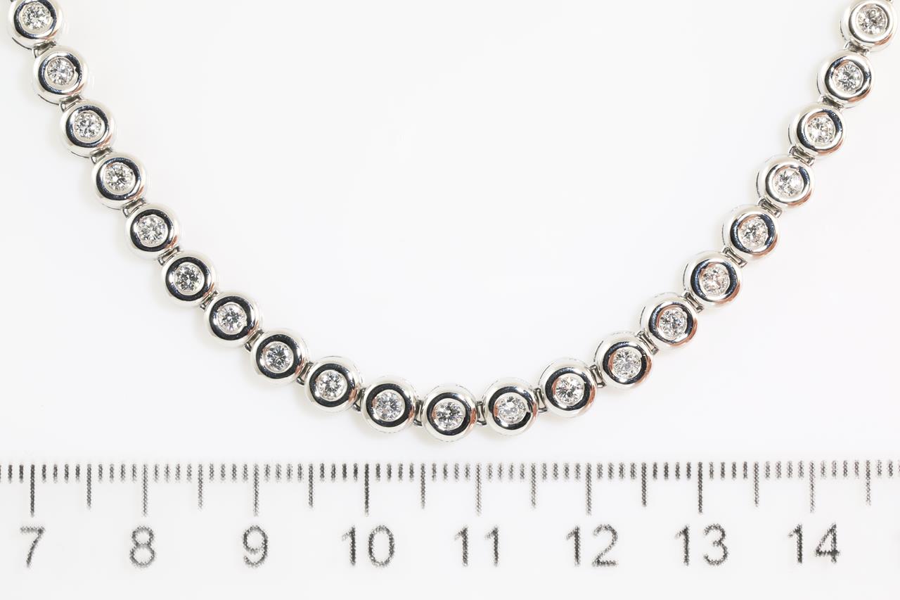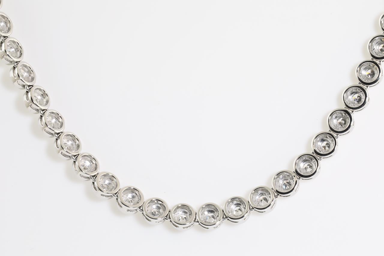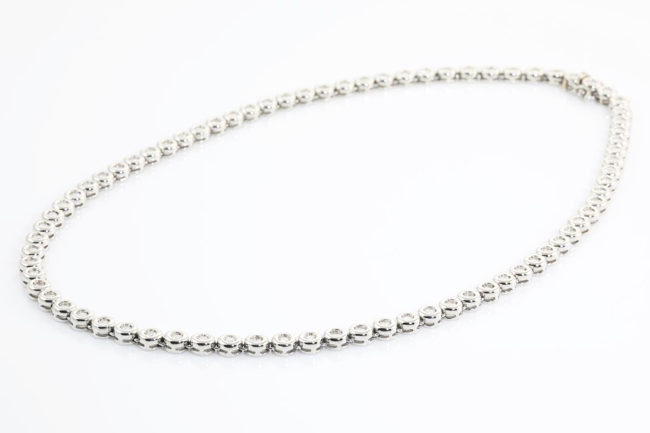 Diamond tennis necklace with seventy-seven round Diamonds totalling 3.41cts (Estimated grading: G VS-SI). Platinum. Length: 42cm. Weight: 54.3g. With certificate #413924. (Pre-owned)