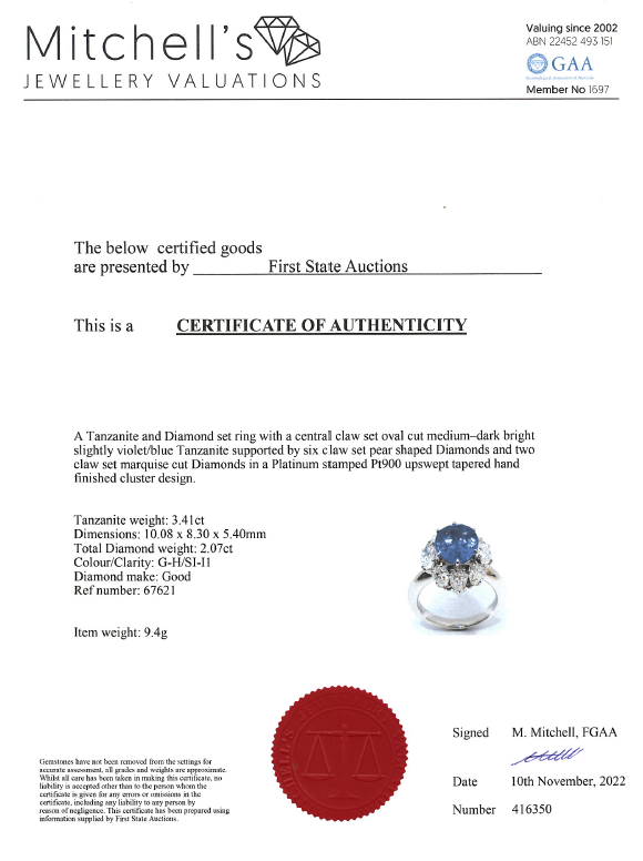 3.41ct Tanzanite and Diamond Ring | First State Auctions