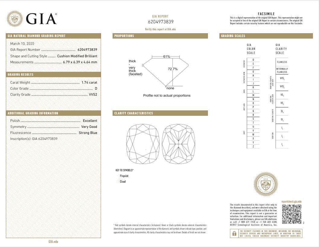 A loose pair of cushion cut Diamonds totalling 3.44cts (Both with GIA reports graded as D VVS2 #2201873562, 6204973839). (New)