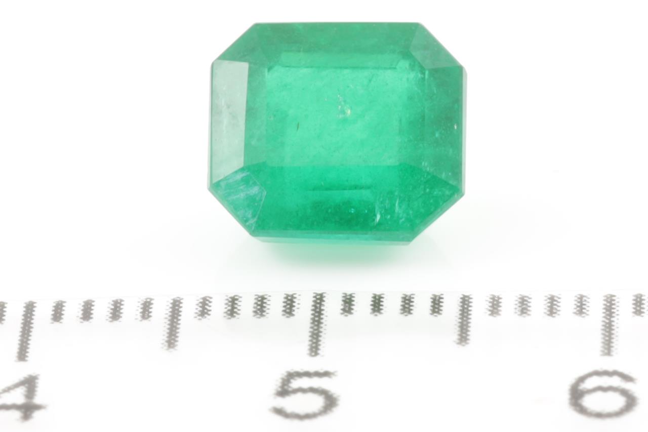 A loose Zambian emerald cut Emerald of 3.49ct (with GSL Gemstone summary report #AA65345/5). Dimensions: 9.03 x 8.05 x 6.19mm. (New)