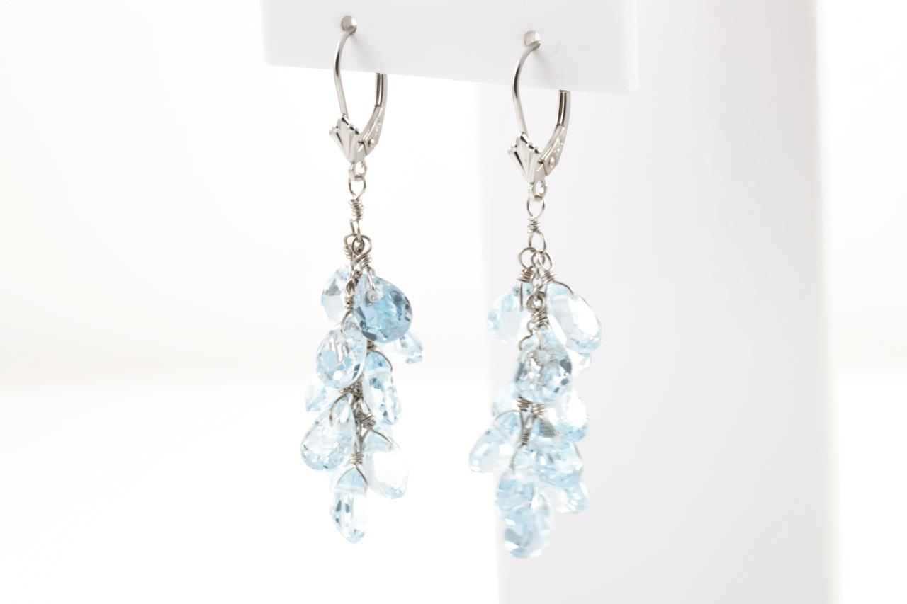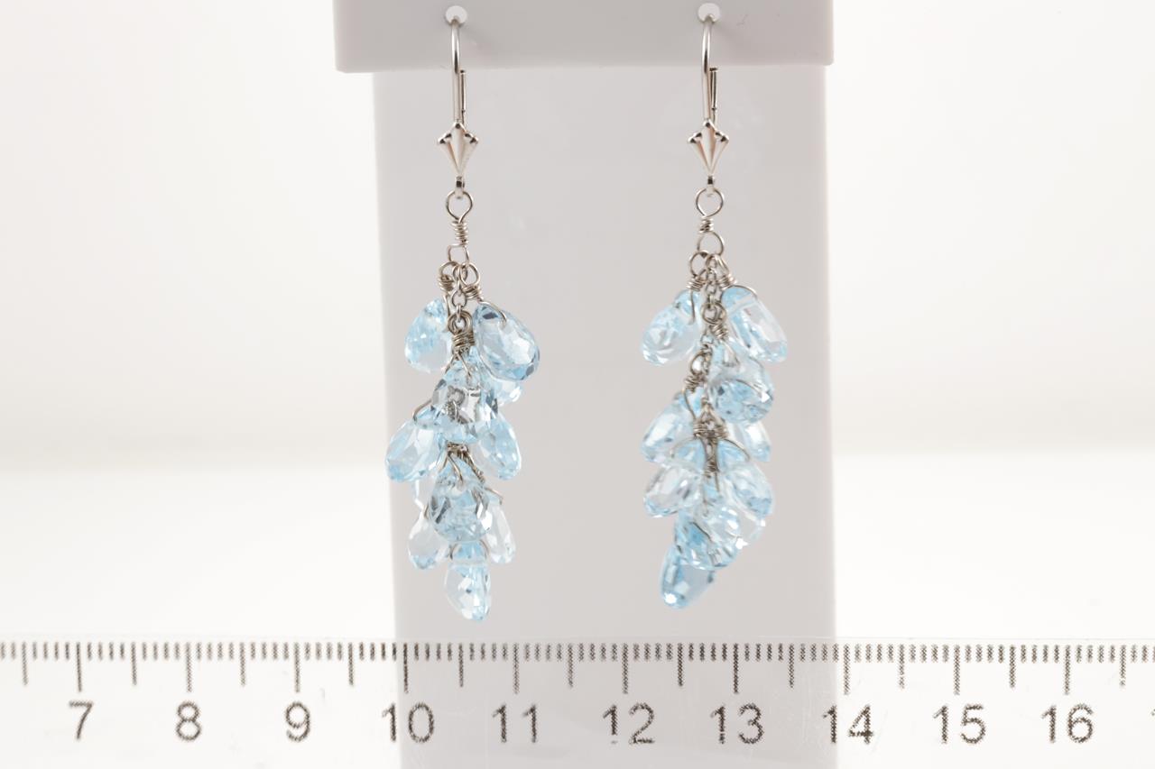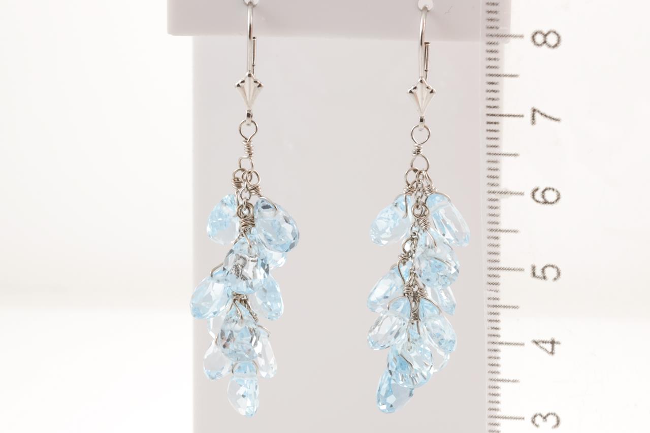 Topaz Leverback Earrings with fancy cut blue Topaz totalling approximately 35.00ct. 14ct white gold. Weight 8.1g. (Pre-owned)